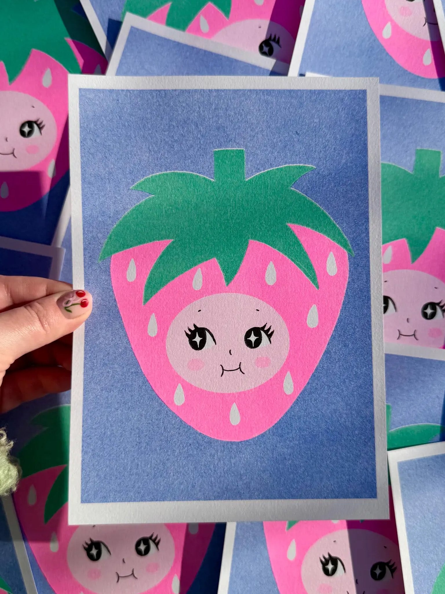 Strawberry Kewpie by Amy Hastings - Risograph Print (A5)