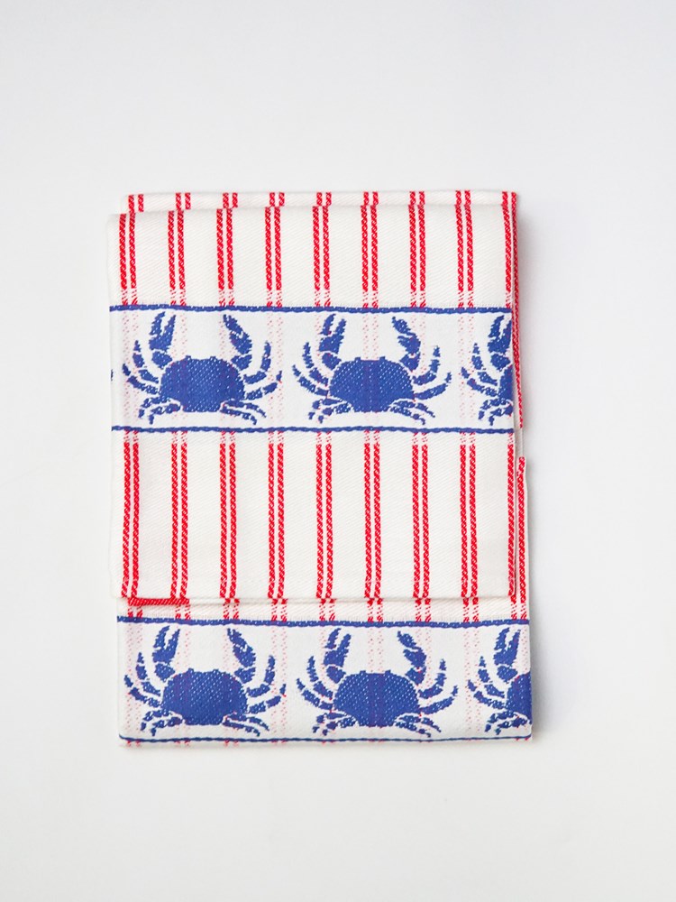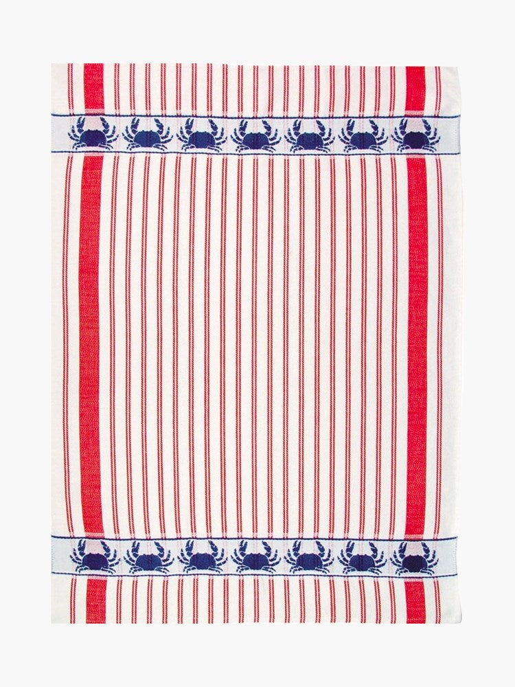 This Crab Kitchen Towel has classic stripes paired with woven blue or red crabs. Perfect for any kitchen or beach house! Use this towel for drying dishes, lining bread baskets, or covering baked goods while they cool. Makes a great gift for the beach, seafood, or crab lover in your life.