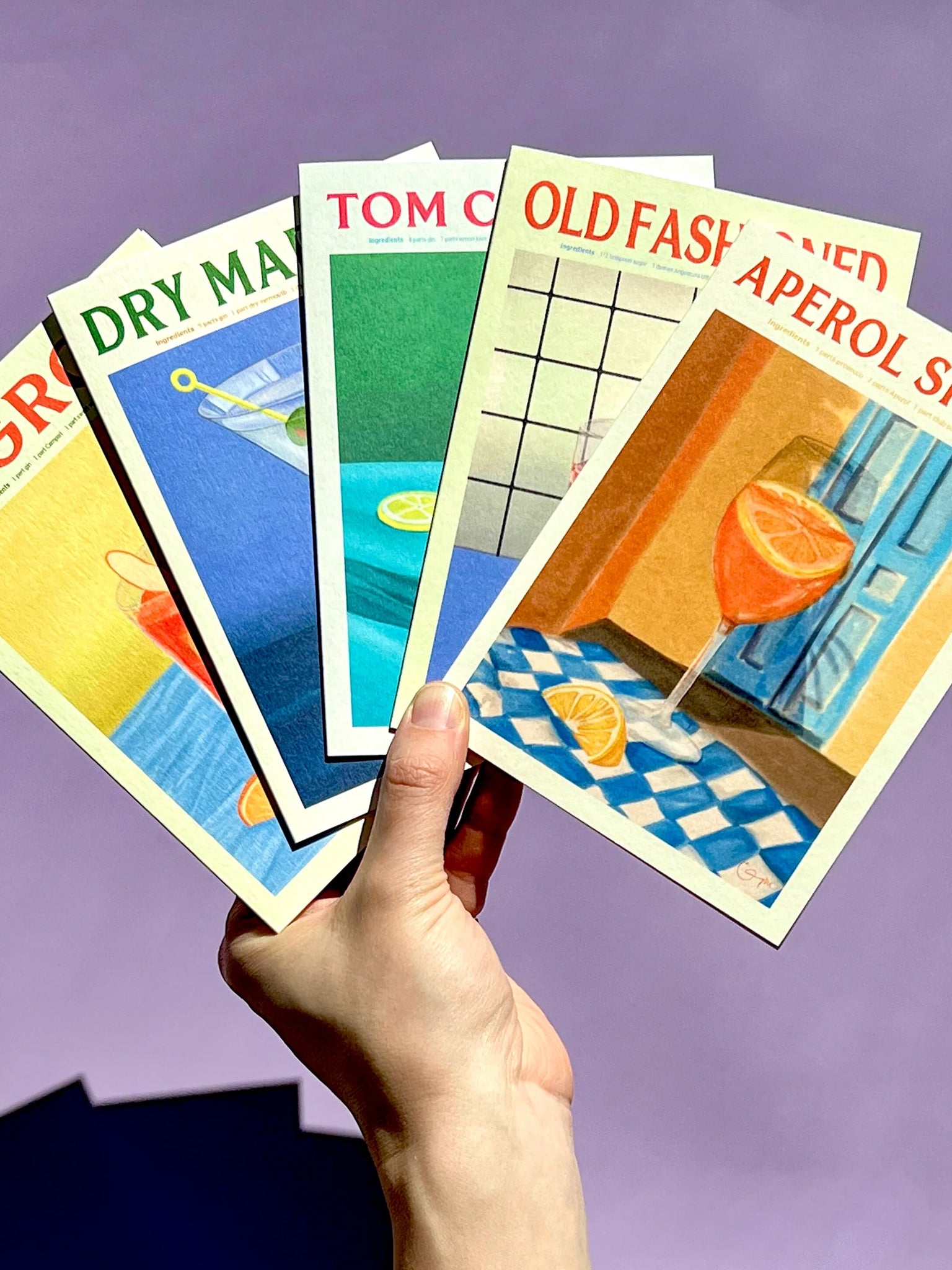 Illustrated by Swedish artist Elin PK, this refreshingly modern card is part of Elin's collection of cocktail-inspired designs. Featuring the iconic Aperol Spritz recipe, its delicate blend of orange and blue tones evoke a sophisticated atmosphere of summer.