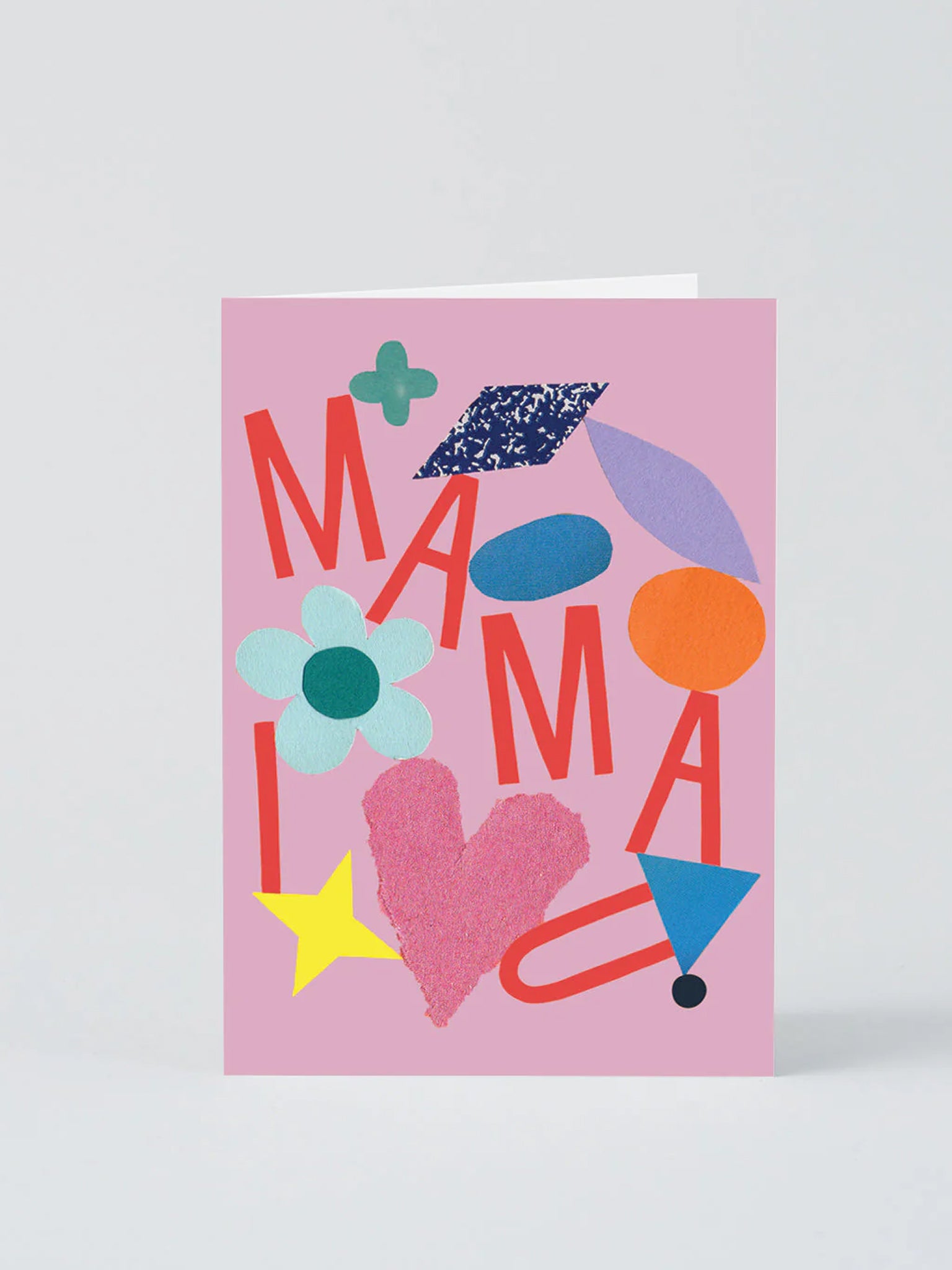 A sweet greetings card to make mum smile. Designed in a bright collage style with vibrant type and geometric shapes.