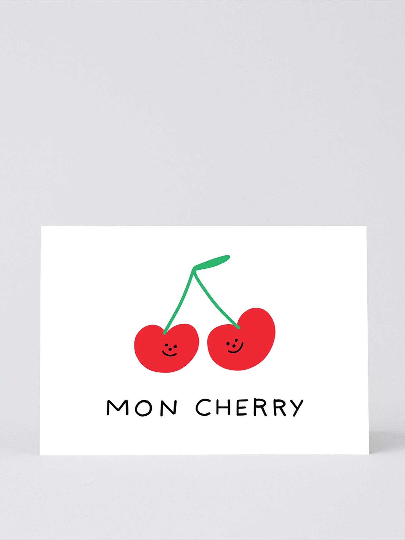 The cheeriest of cherries, illustrated by London-based illustrator Holly St Clair. Pair this card with Holly's matching wrapping paper. 10.9cm x 15.5cm (folded) Materials: Comes packed with a bespoke leaf-patterned envelope in a clear biodegradable cello bag. Printed in the UK on uncoated FSC-certified card, using vegetable-based inks. Blank inside for your own message