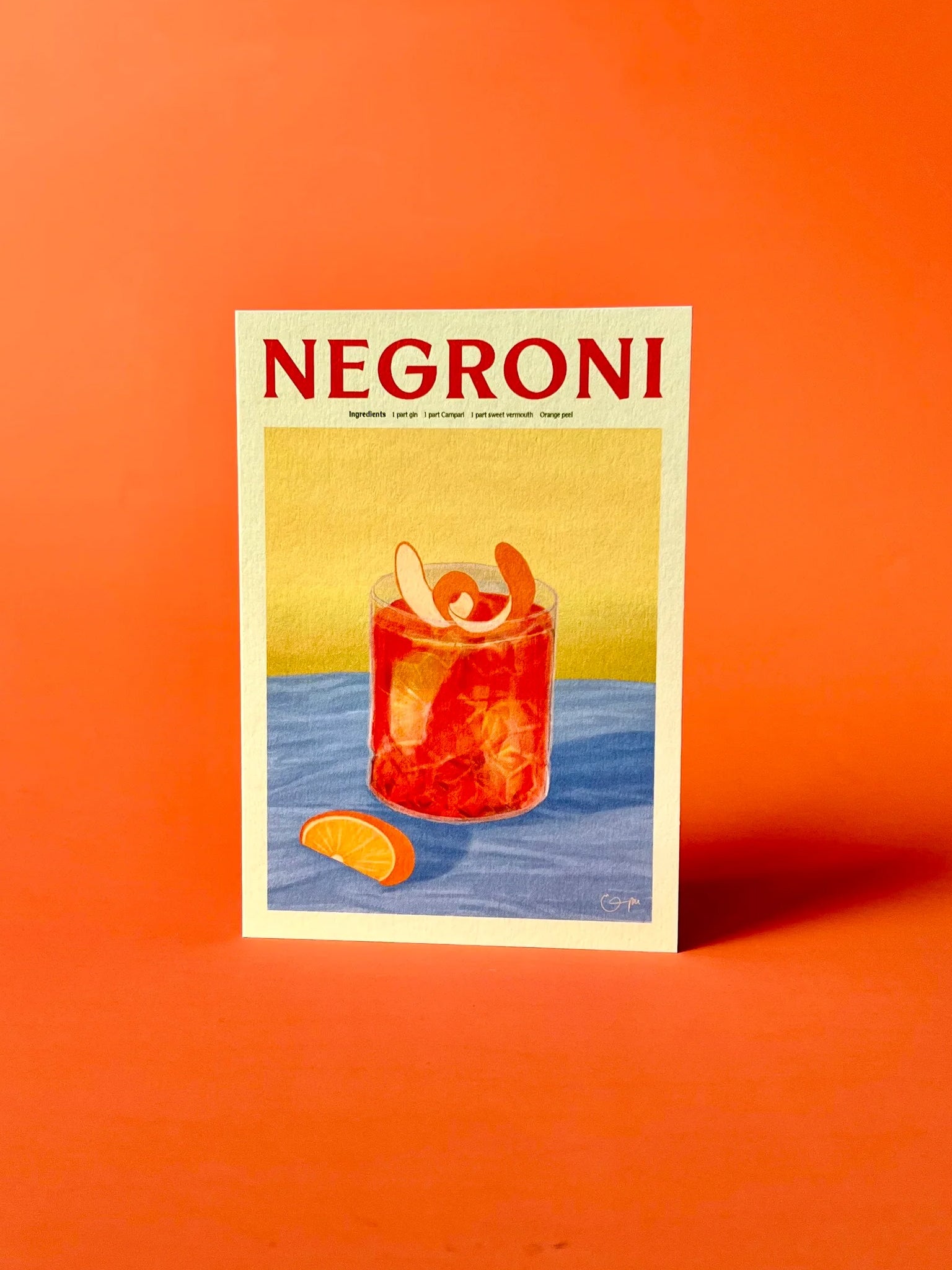 Say "cheers" with this zesty Negroni greetings card designed by Swedish illustrator Elin Palmaer Karlsson. Featuring a dashing Negroni cocktail recipe to give their celebration an extra boost. Stylish and adaptable, it's the perfect way to toast any occasion