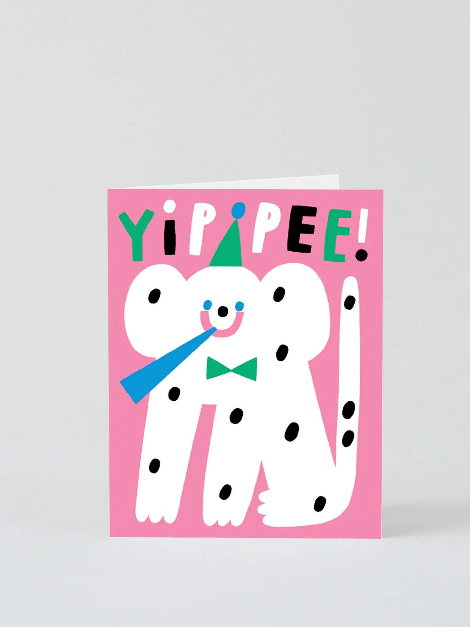 This freckled fella is all dressed up and ready to party. A children's greetings card design full of personality and colour. Dimensions: 10.8cm x 14cm (folded). Comes packed with a turquoise envelope in a clear biodegradable cello bag. Printed in the UK on uncoated FSC-certified card, using vegetable-based inks. Blank inside for your own message.