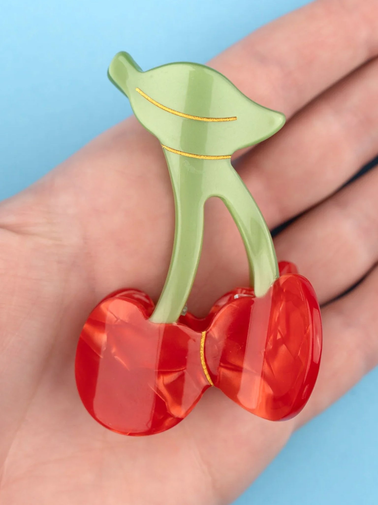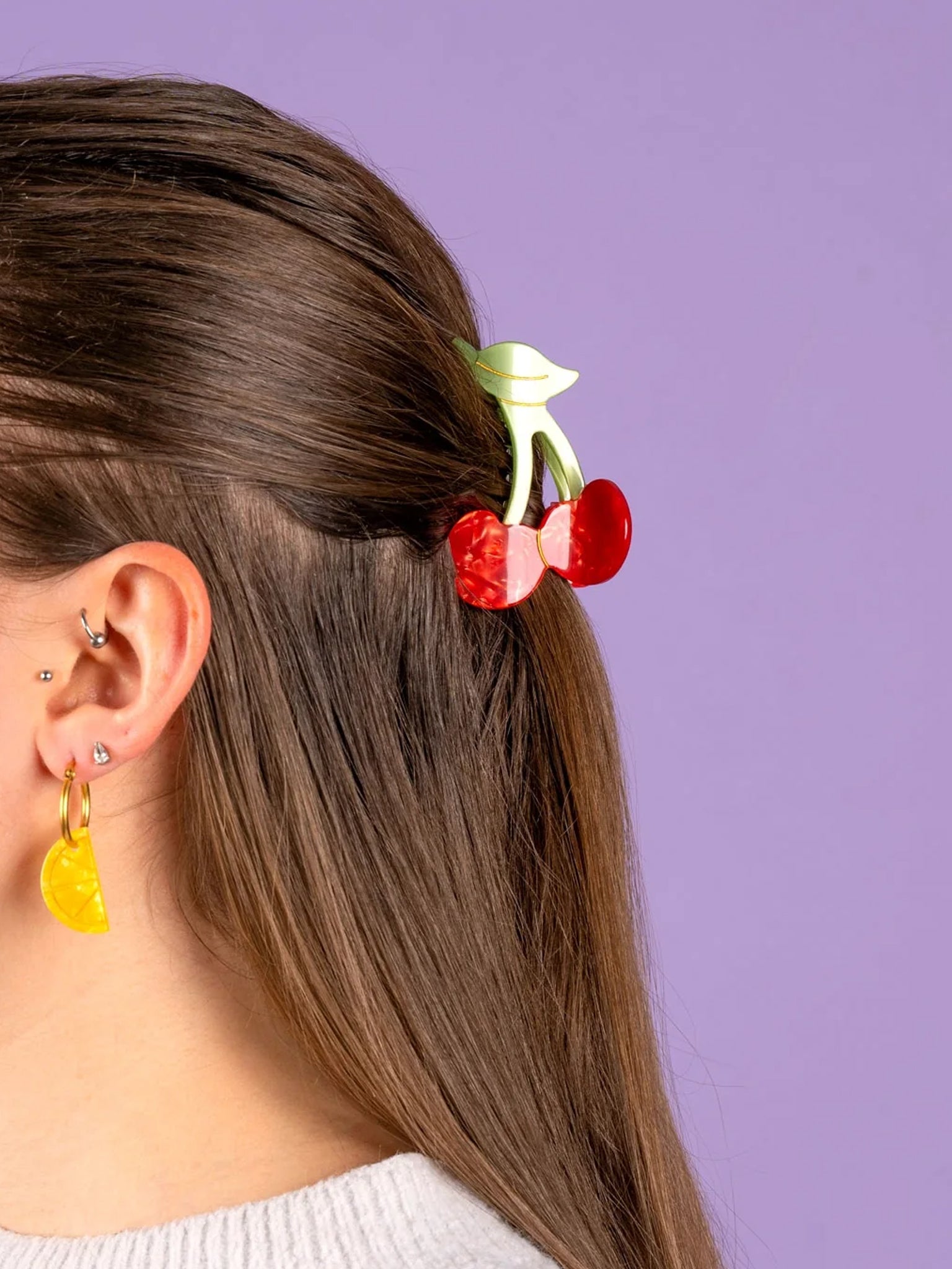 A pretty pair of cherries as a creative hair claw, with a vintage look just the way we like it at Coucou Suzette. This glossy claw is made of acetate and the details are added with golden ink, for a colorful, fresh and sweet look all year around!