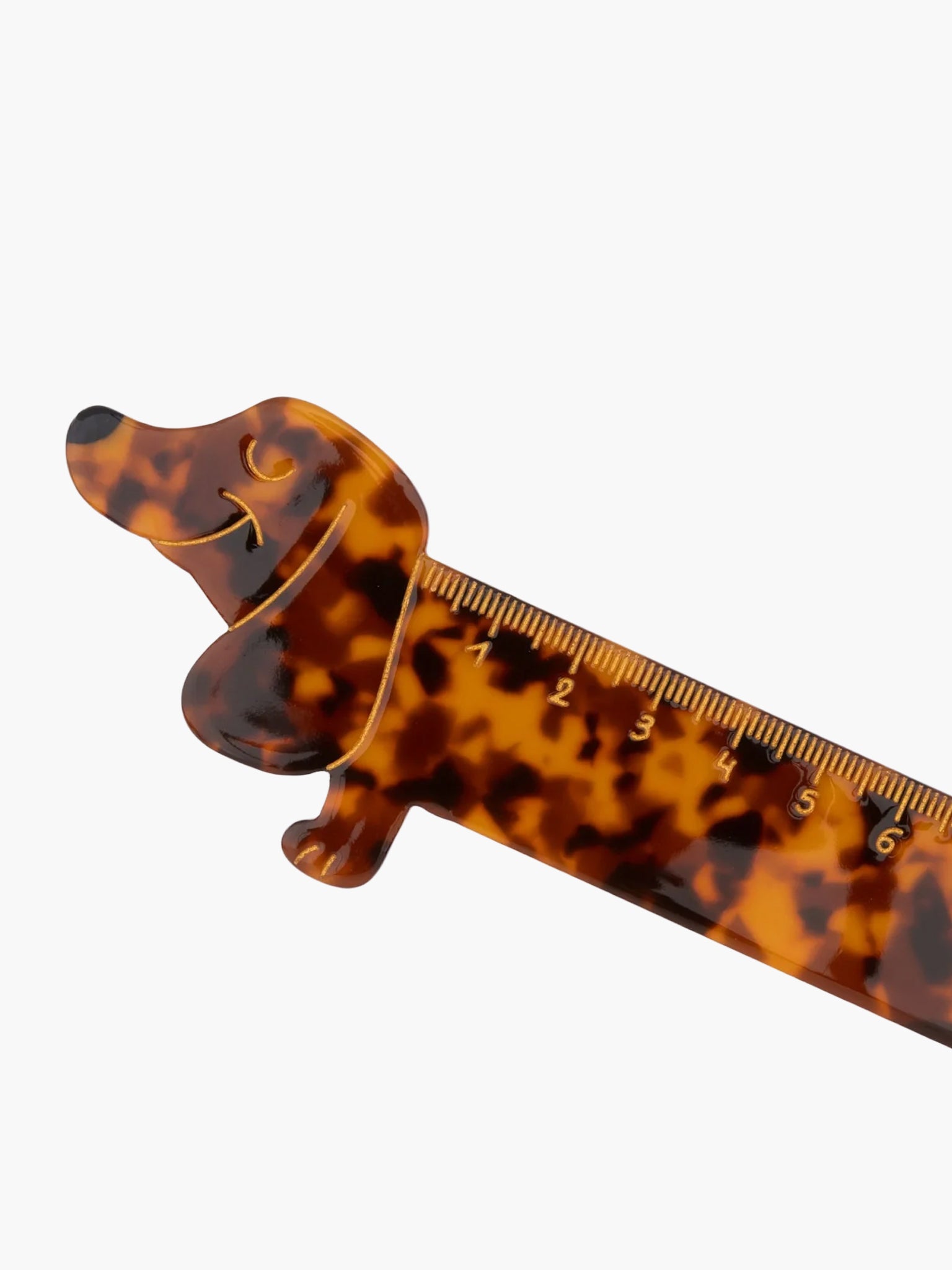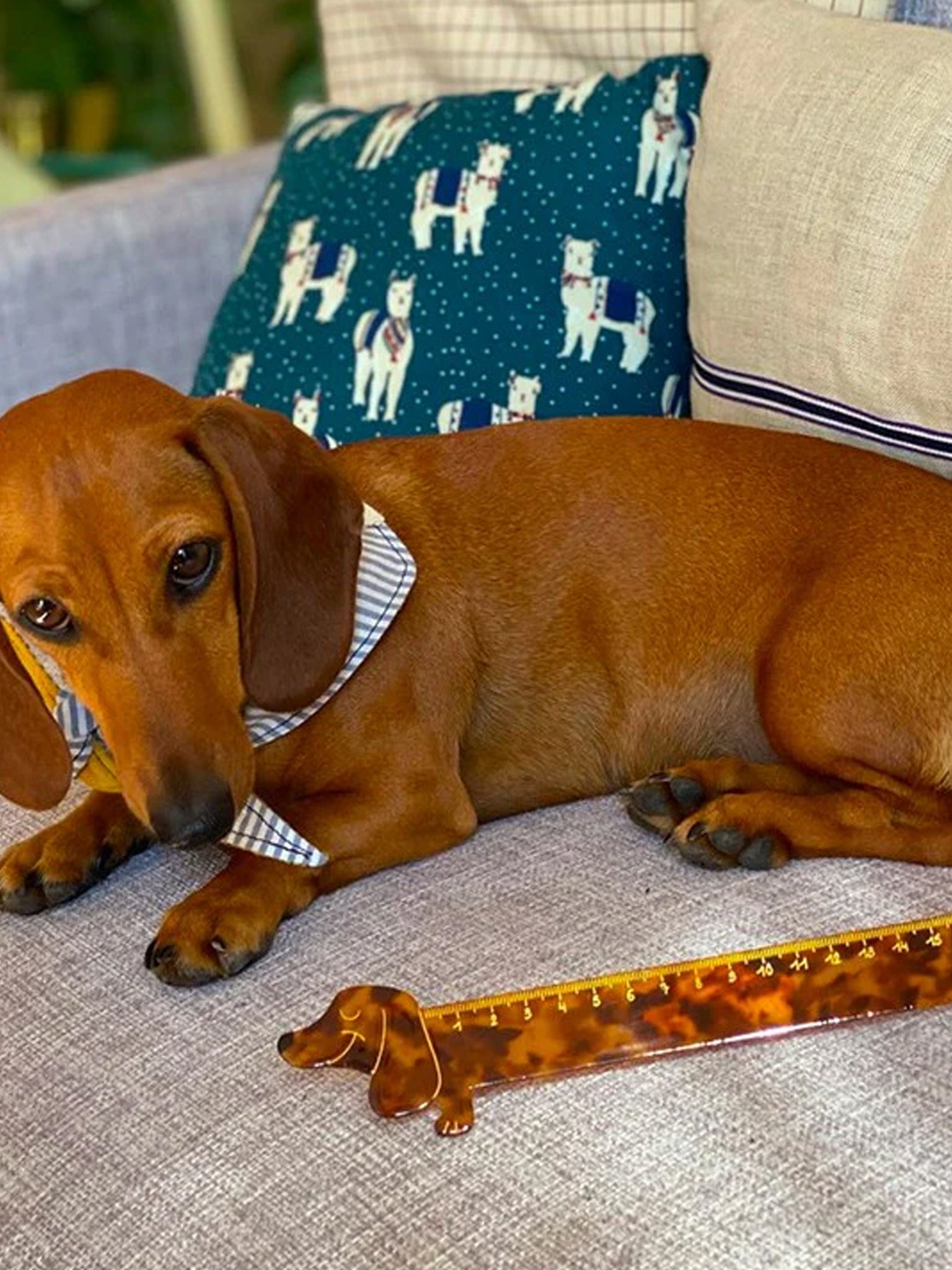 The dachshund, an oddly long dog, perfect to be turned as a ruler, don’t you think?! From our point of view it was obvious, so here it is as a quality double decimetre. This elegant dachshund ruler is made of acetate, for a nice vintage look. With its golden details and hand-drawn numbers, we can’t resist this little desk jewellery!