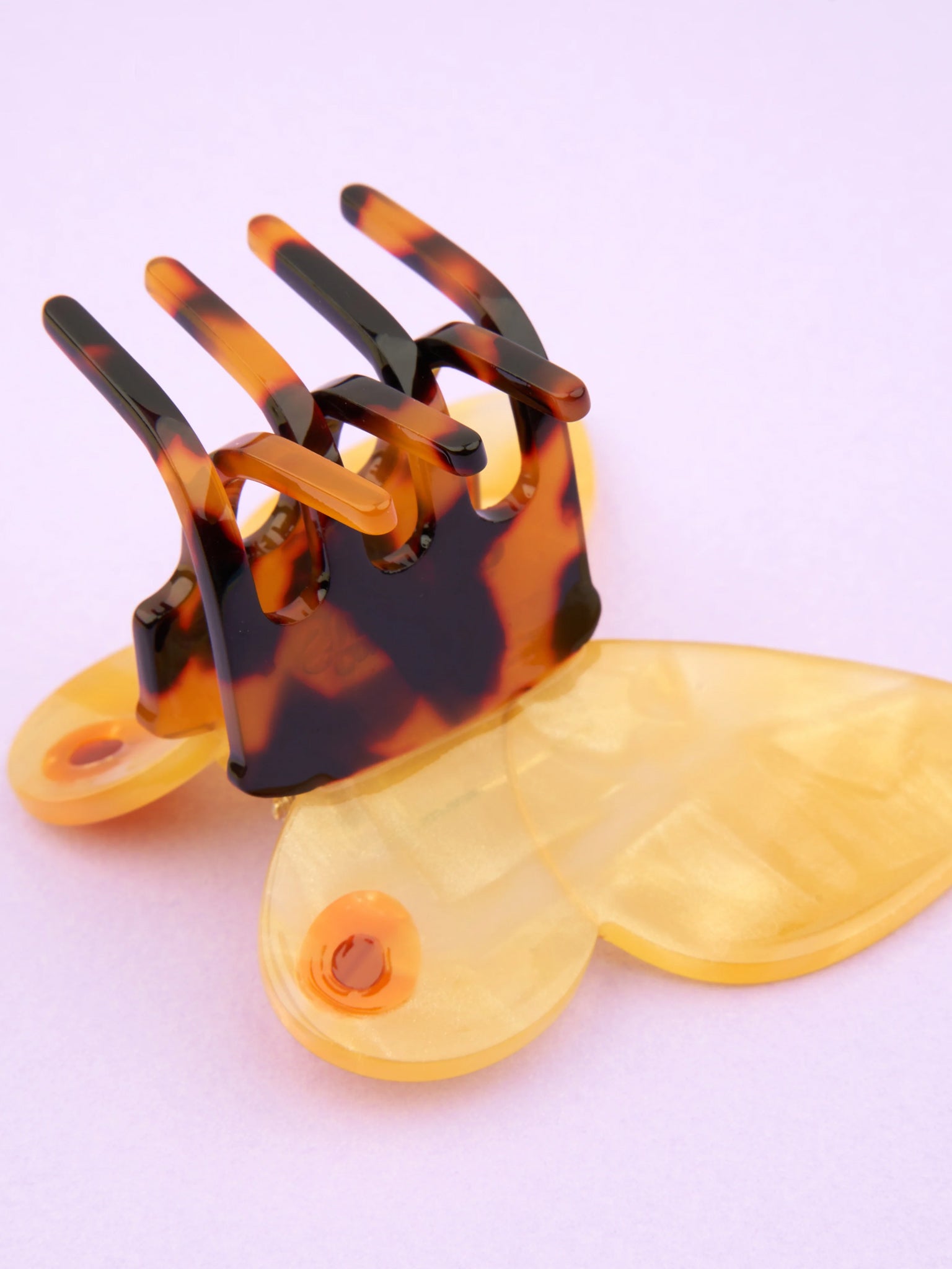 A gorgeous yellow butterfly ready to feed on all the flowers in the garden (including us, flower among flowers, right?). This original hair claw fits perfectly at the base of a ponytail or on a high bun.