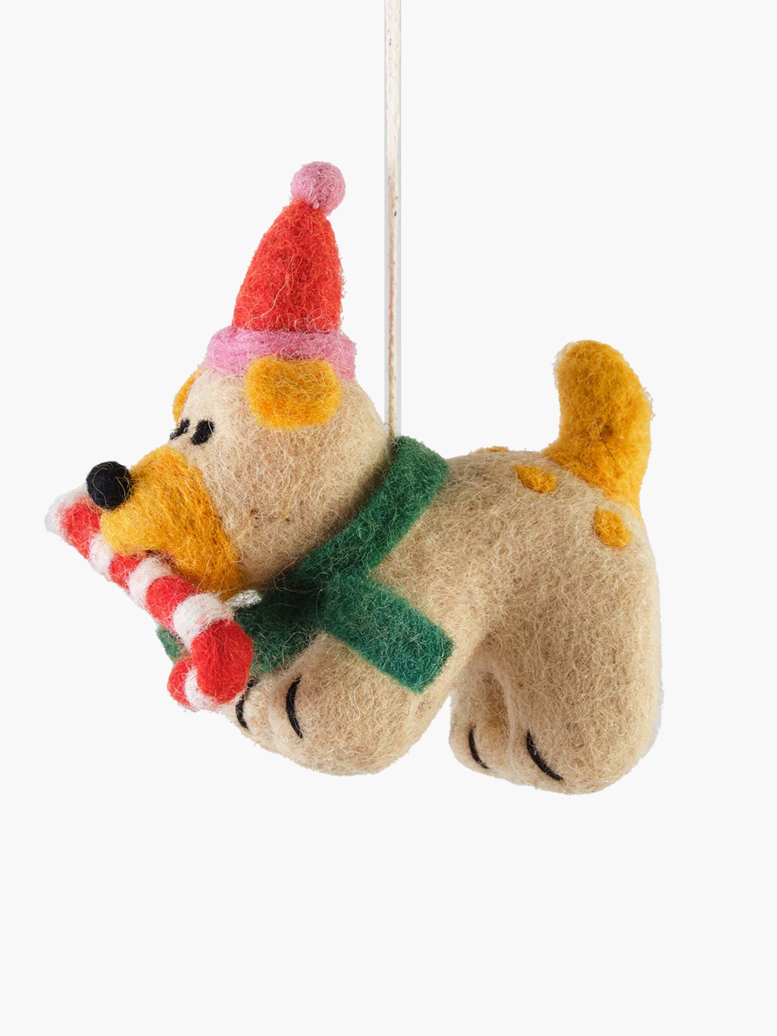 Handmade Felt Ornament - Martha (Candy Cane Dog)