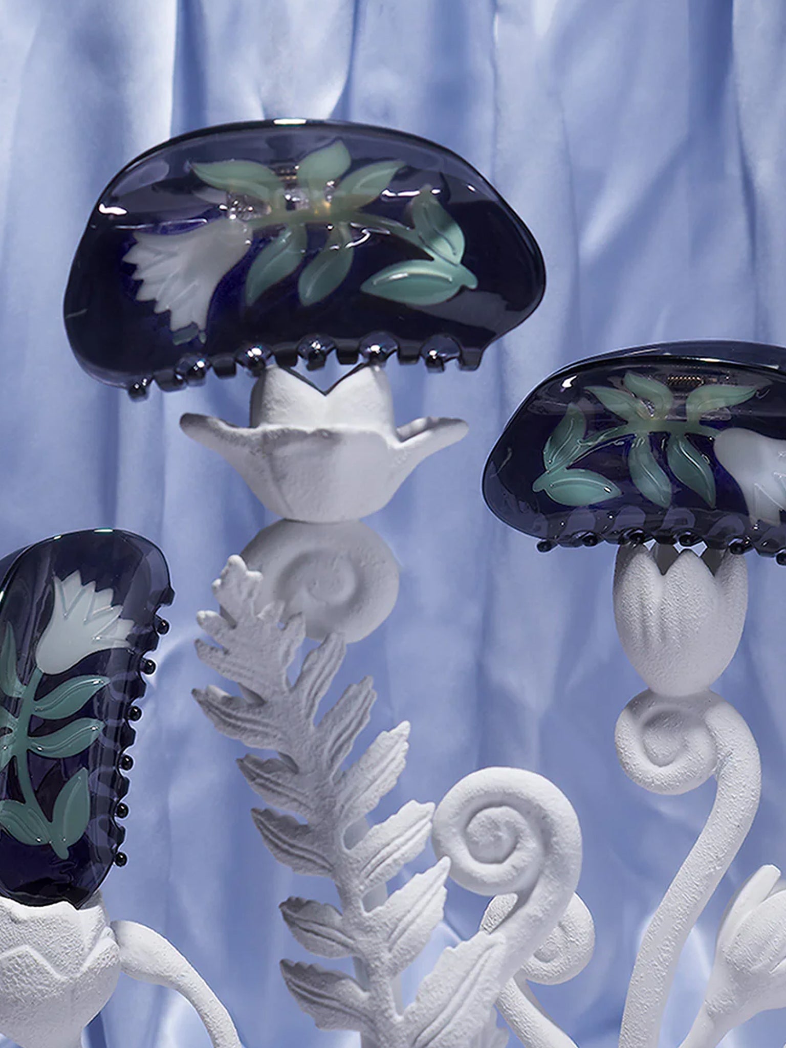 Winona Irene is an independent California-based artist who creates stunning sustainable hair accessories including hair claws, clips, and barrettes. Every hair accessory is unique due to the nature of the cellulose acetate used and, as a result, each piece being cut has slightly different patterns and colours.