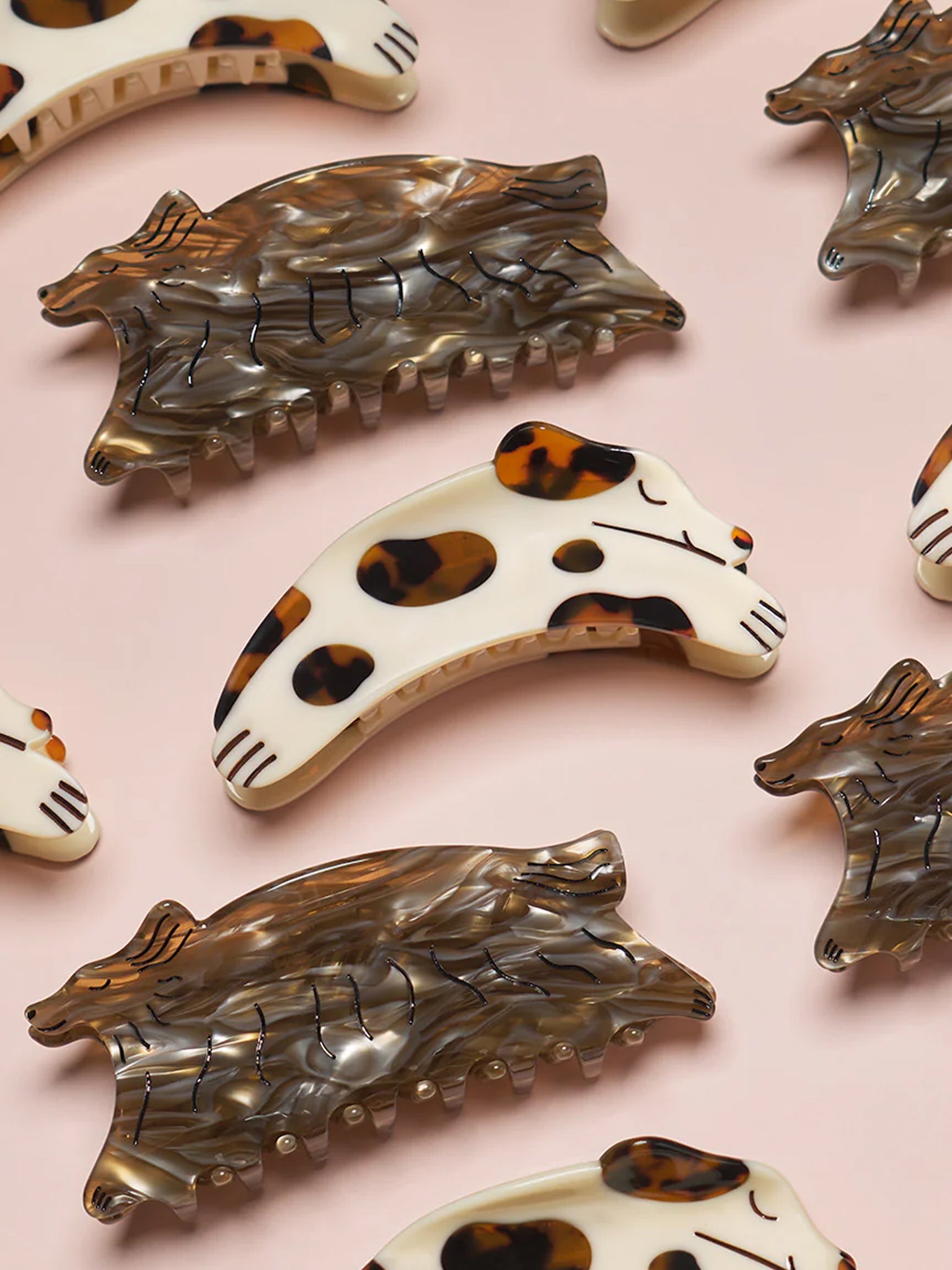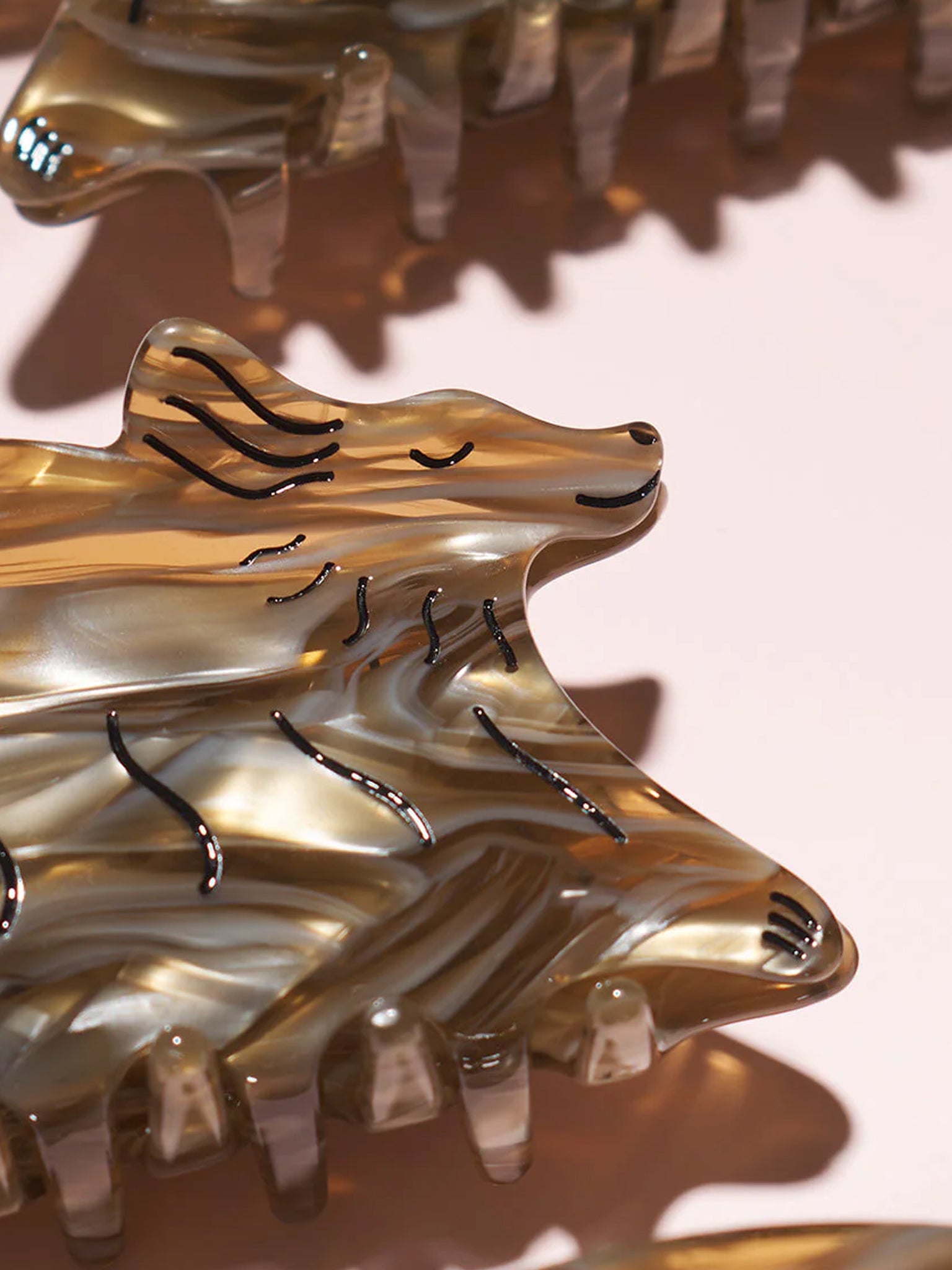 Made to look like a majestic leaping Borzoi, with its fur catching the breeze. This claw is perfect for dog lovers who want a more subtle design than our classic puppy claw. The lovely shimmering beige tones in this claw are beautiful in all hair colors, while the wrap-around claw holds hair gently and securely in place. This claw is longer than some of our others, and best suits medium to thick hair.