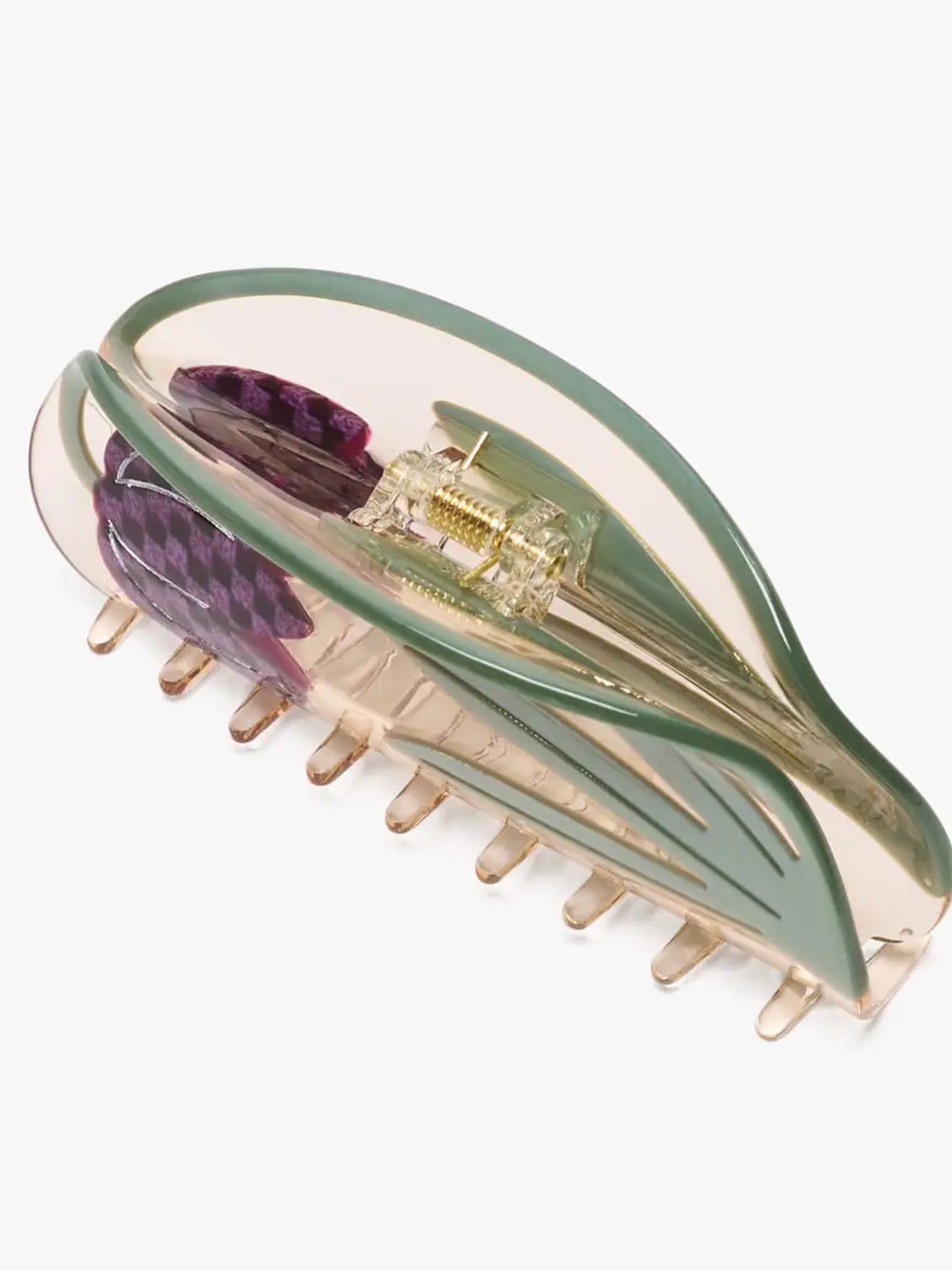 Winona Irene is an independent California-based artist who creates stunning sustainable hair accessories including hair claws, clips, and barrettes. Every hair accessory is unique due to the nature of the cellulose acetate used and, as a result, each piece being cut has slightly different patterns and colours.