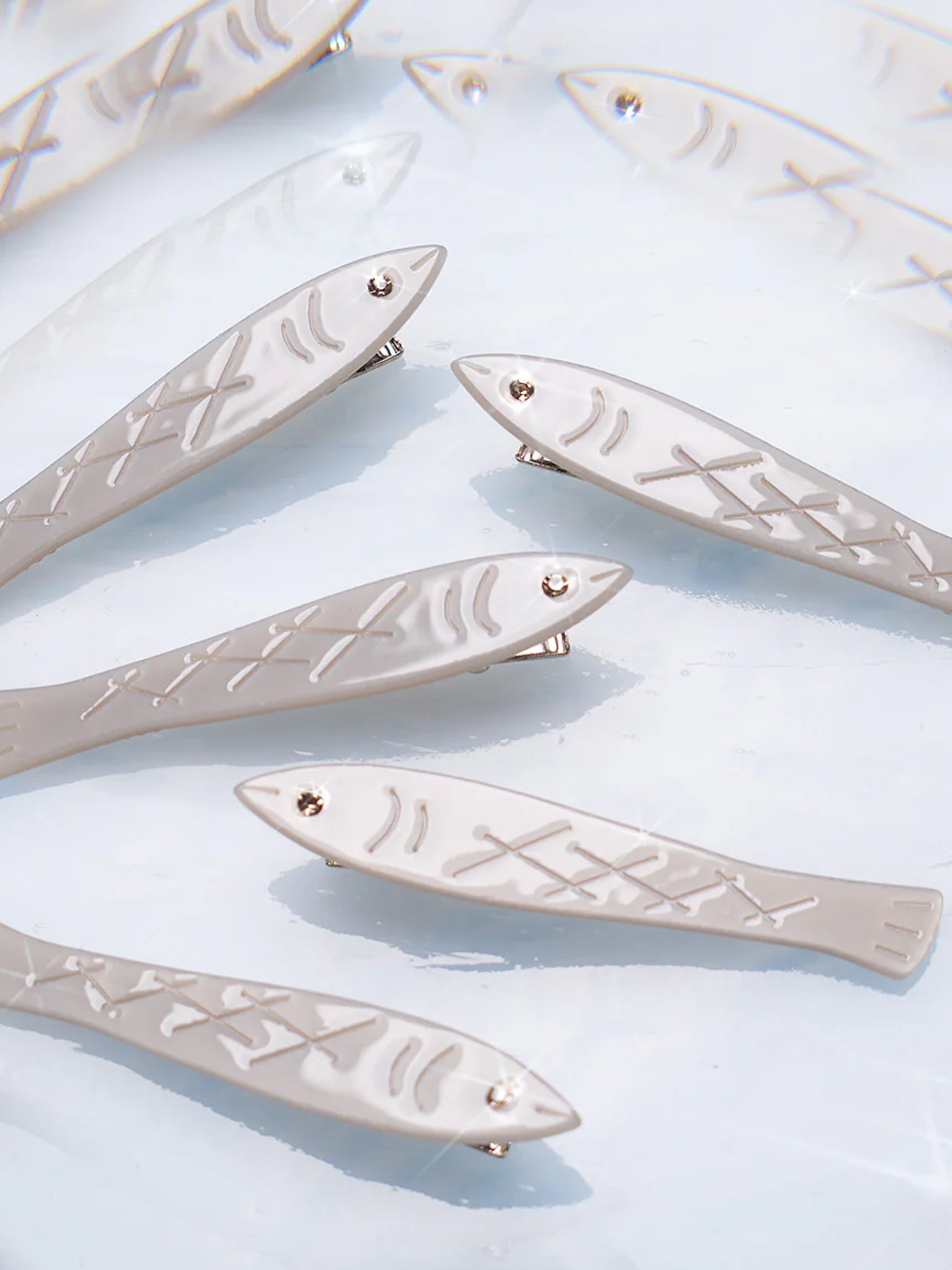 A pair of silvery sardines, with delicate details and the perfect amount of sparkle!