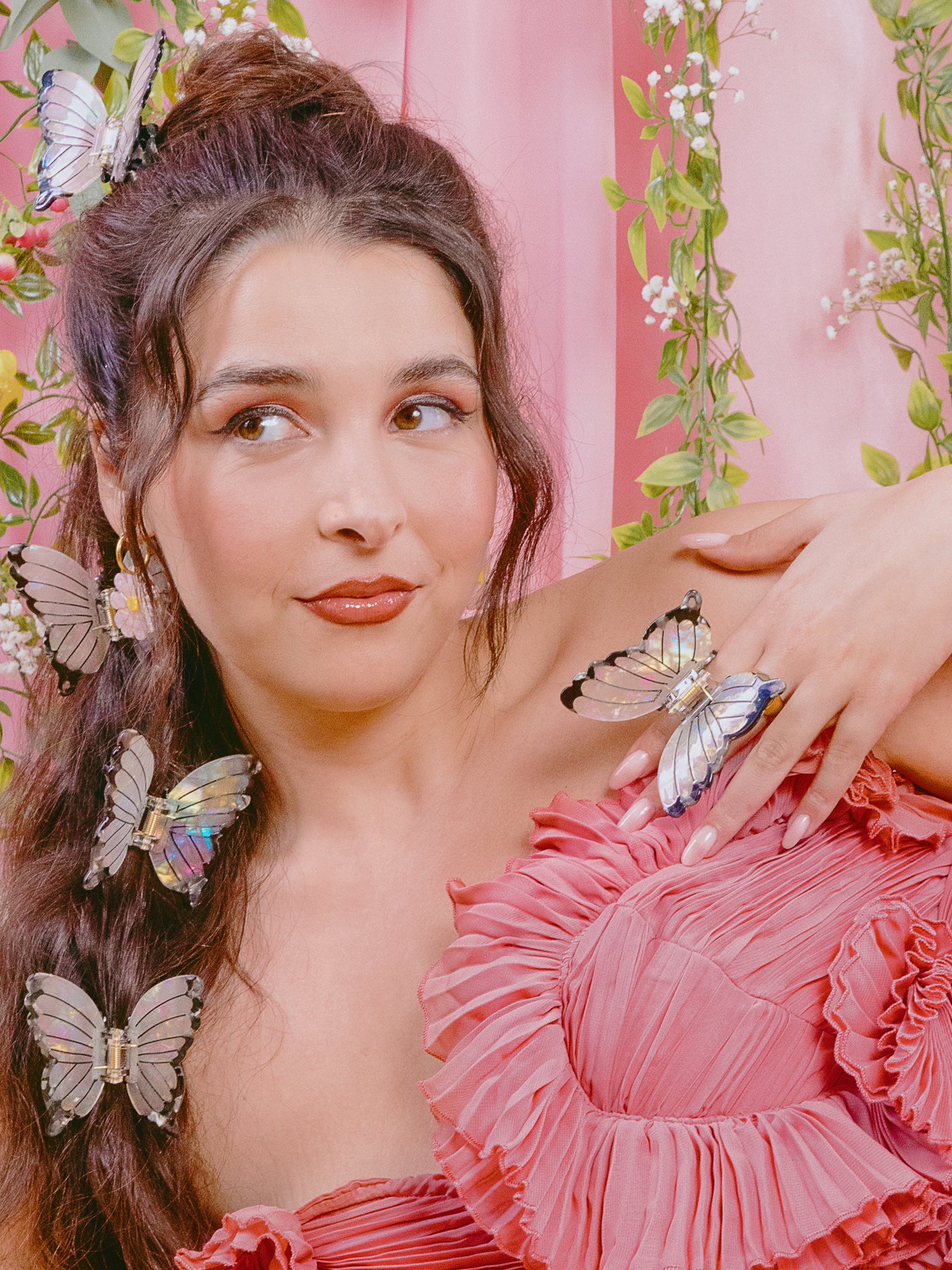 Our majestic blue butterfly has made a new friend: the white butterfly! This romantic hair claw clip mesmerizes us with its iridescent color and thousand highlights. It is perfect for any hair style, whether on a bun or at the base of a ponytail.