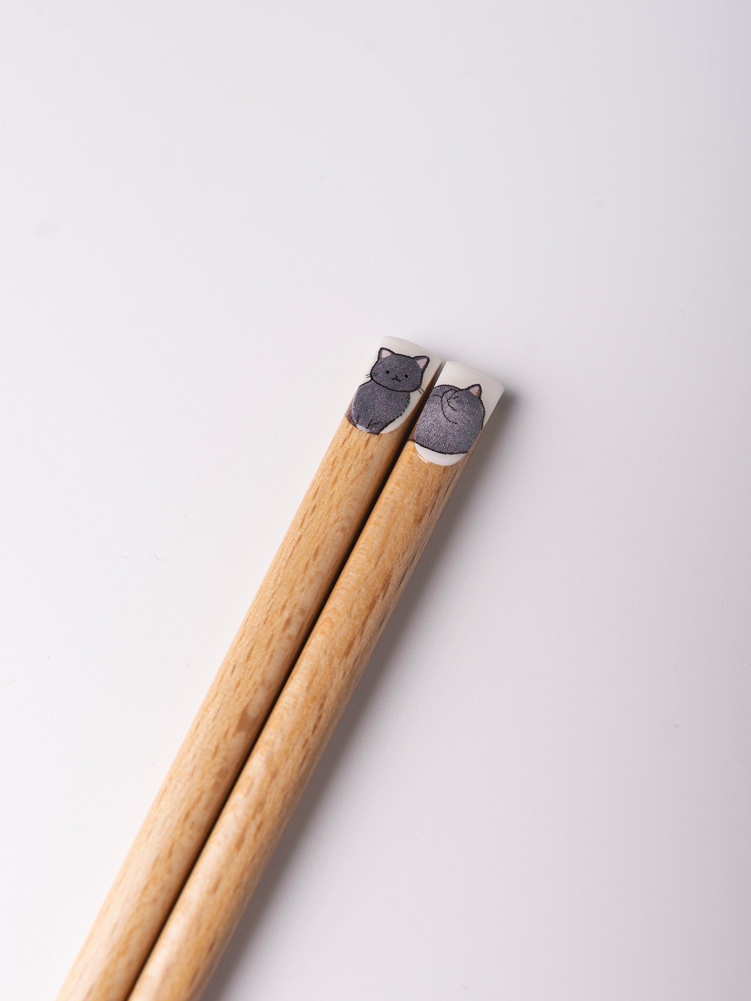 These natural chopsticks are a perfect match for any dining table. Cute cats adorn the top of the chopsticks, perfect for any cat lover!