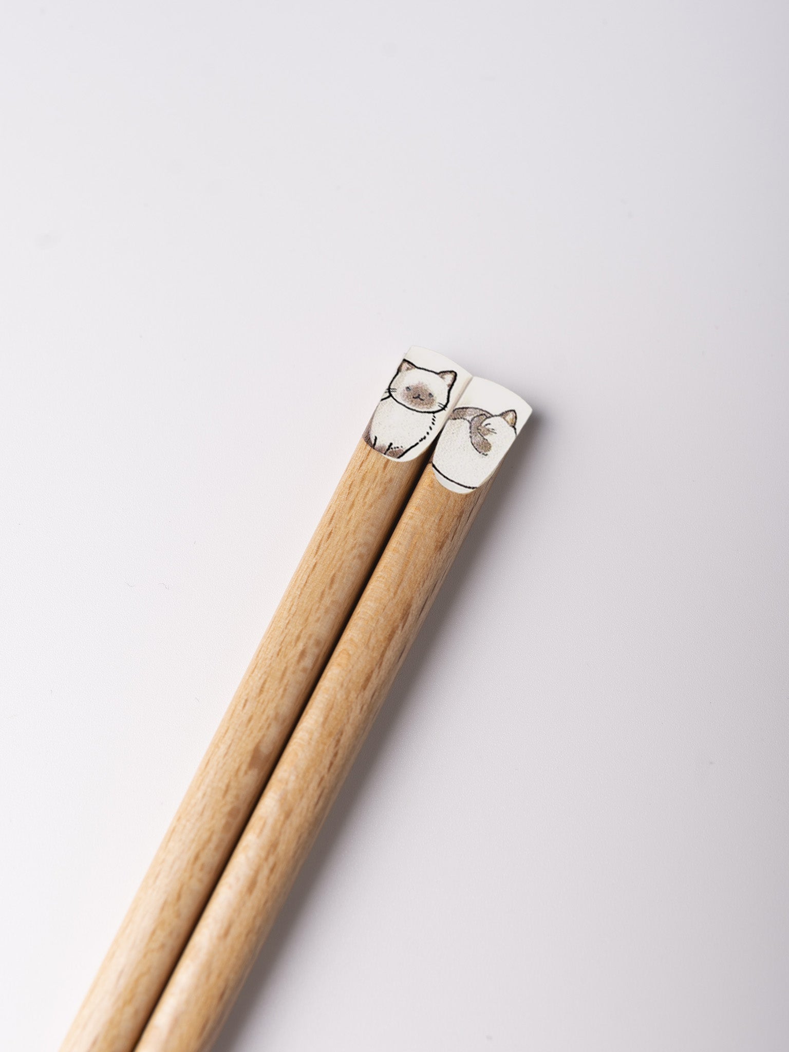 These natural chopsticks are a perfect match for any dining table. Cute cats adorn the top of the chopsticks, perfect for any cat lover!