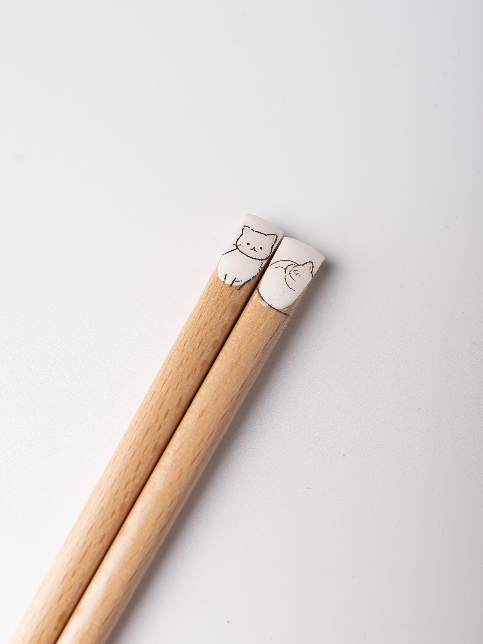 These natural chopsticks are a perfect match for any dining table. Cute cats adorn the top of the chopsticks, perfect for any cat lover!