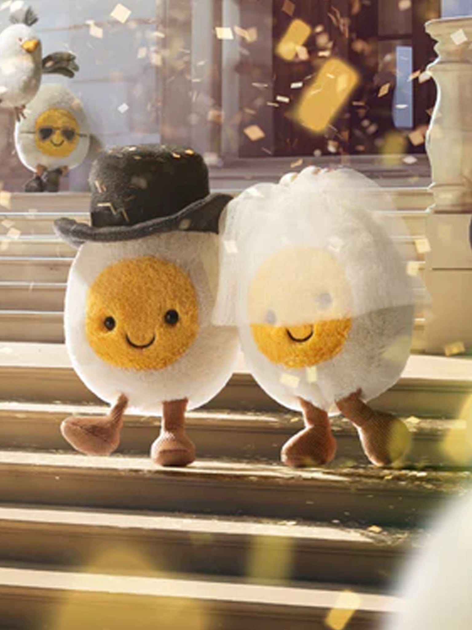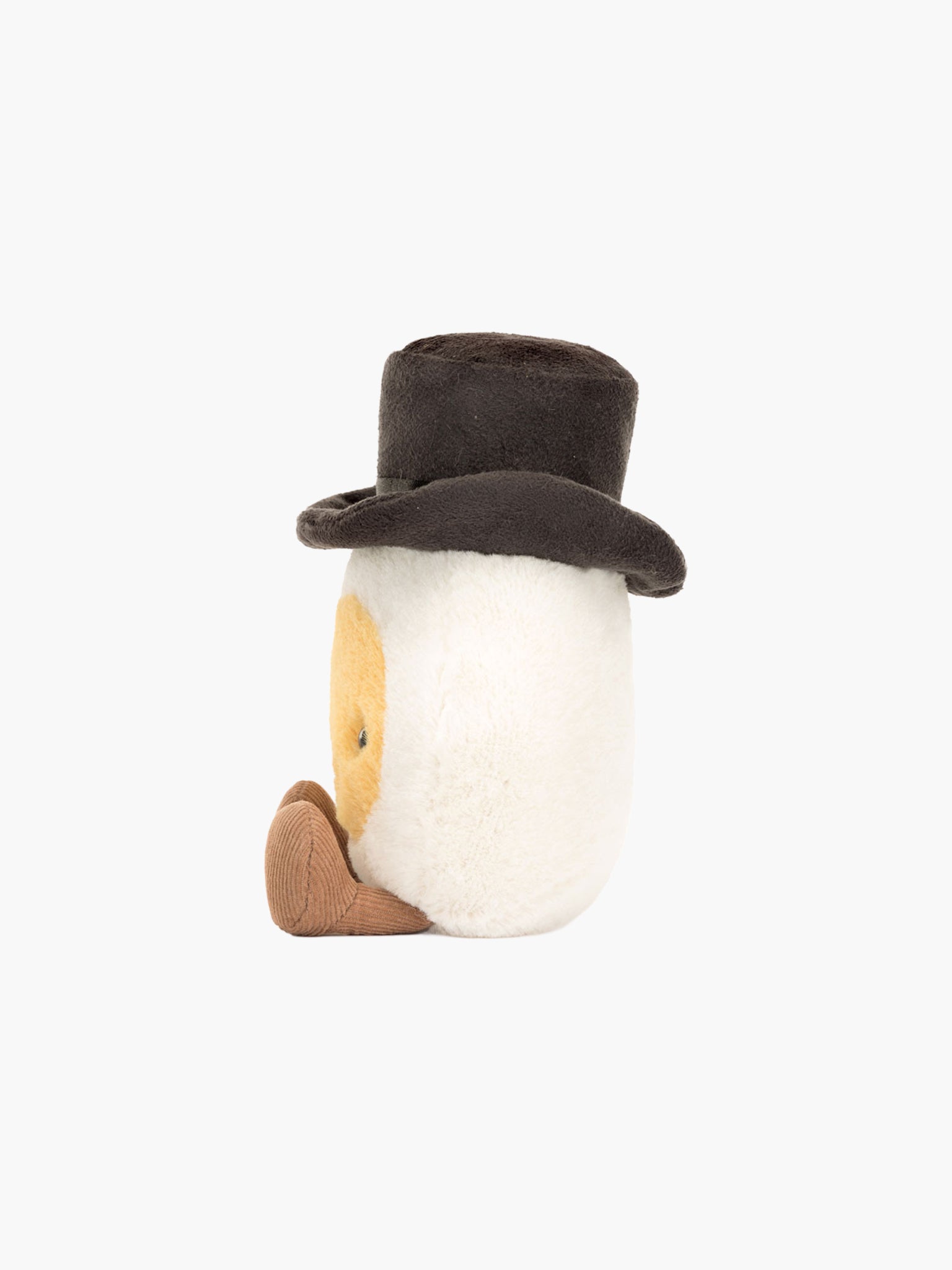Amuseables Boiled Egg Groom can't wait to say, ‘I do’! With super-soft fur in cream and yellow, and a suedette top hat with black satin band, this egg is skipping down the aisle on cocoa cordy legs!