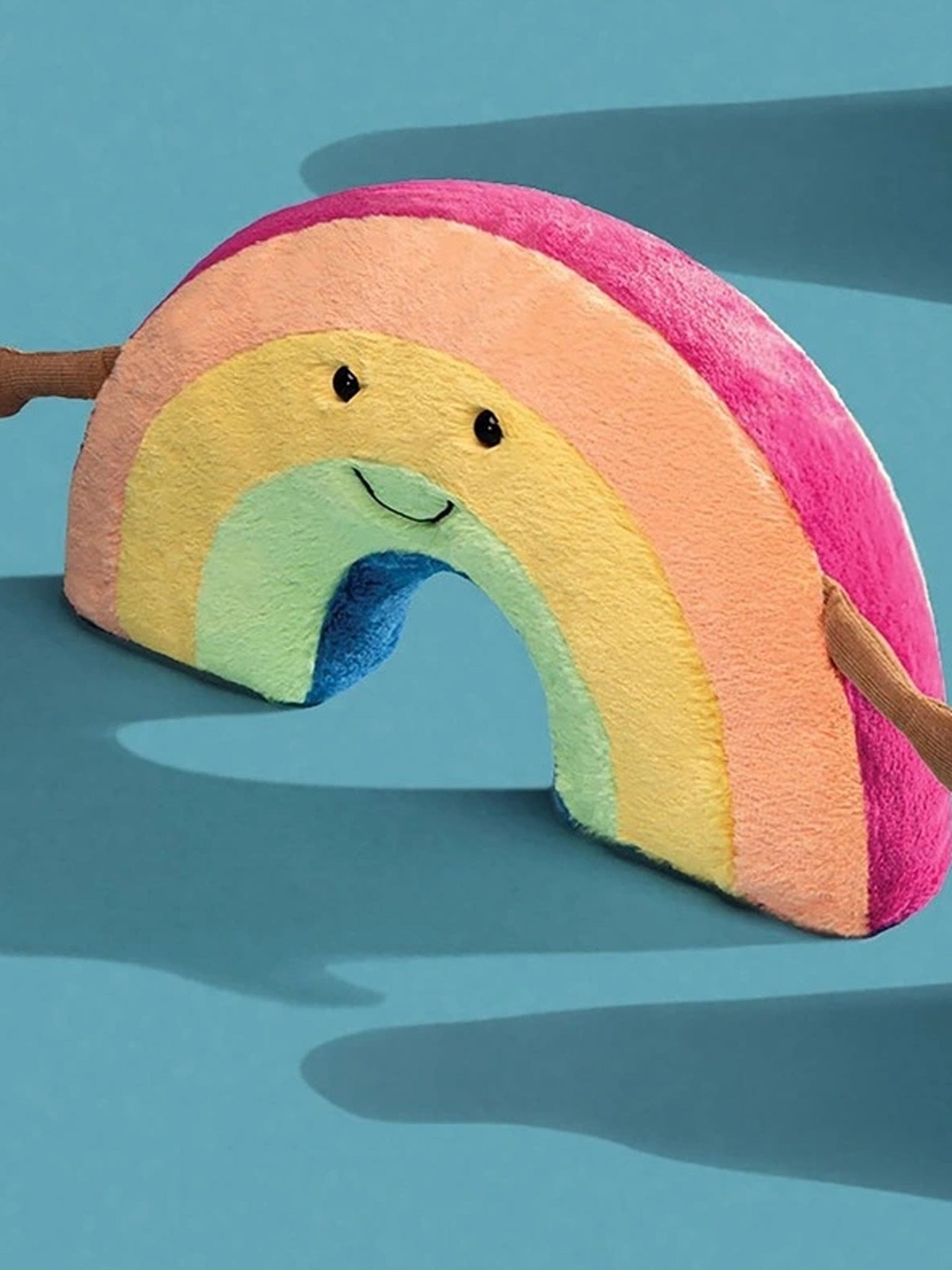 Amuseables Rainbow loves everybody, and welcomes one and all for big, colourful hugs! With pastel stripes in peach, yellow and turquoise, cordy arms and a goofy smile, this squidgy rainbow brightens up the day. A poppet full of pride!