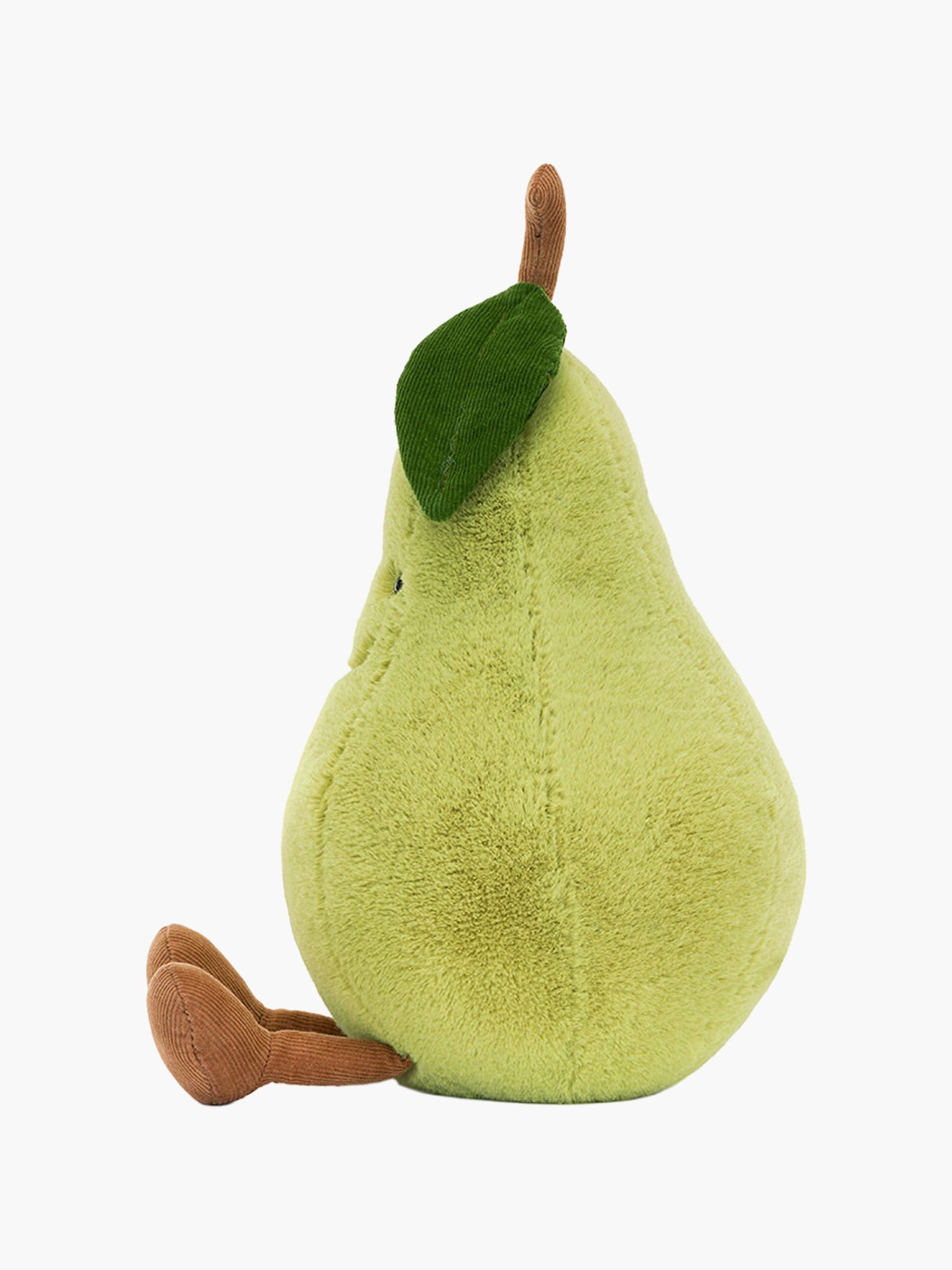 With fresh green fur, chocolate cord boots and a gorgeous chubby tummy, Amuseables Pear has good reason to smile! With a weighted base, woody stalk, and dark-green cord leaf, this pear makes an excellent kitchen mascot!