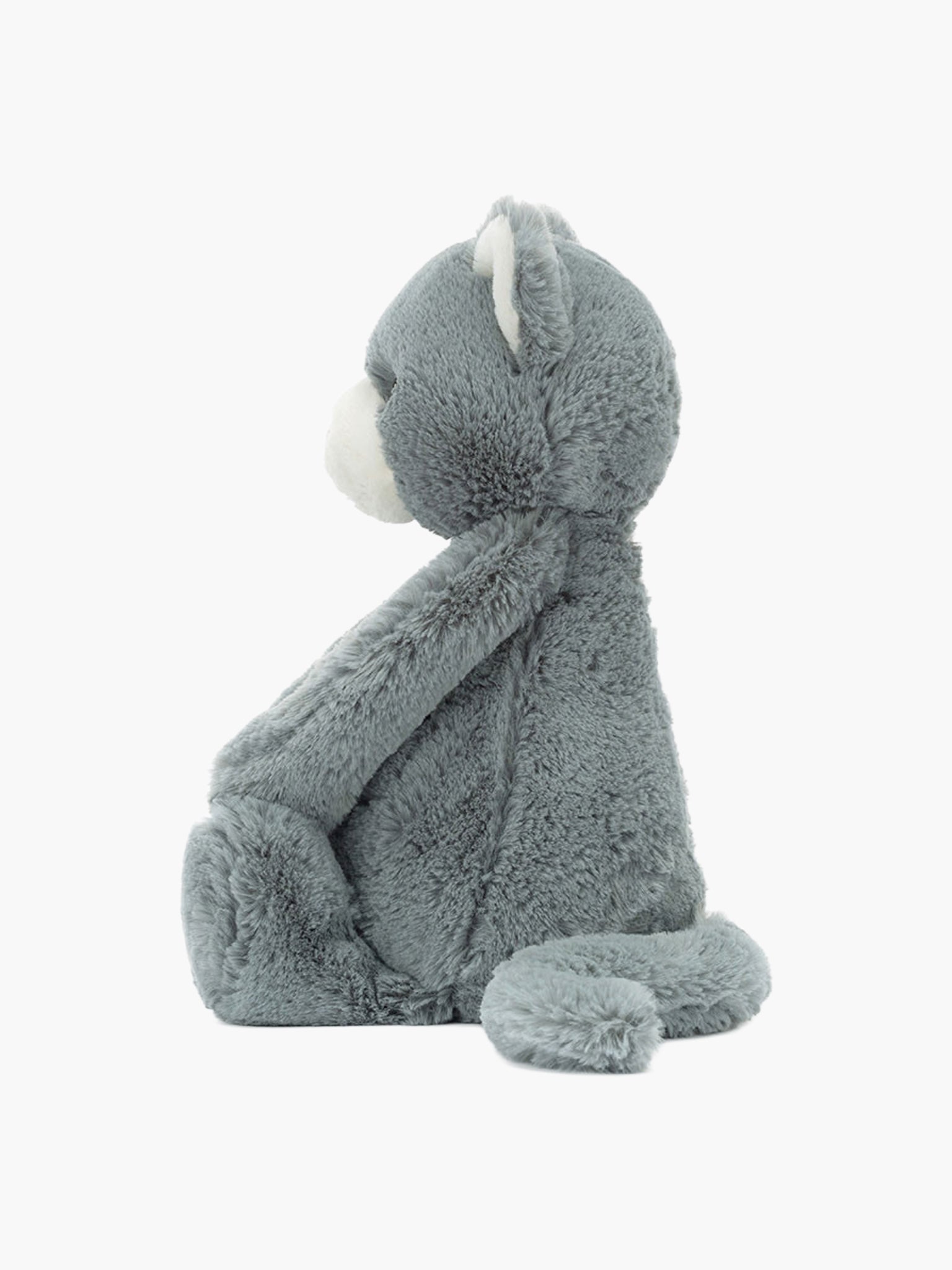 So soft and ever so pretty, Bashful Kitten is a brilliant feline friend. This dreamy cat has cloud-soft grey fur with a cream muzzle and pale pink suedette nose. With a long, curled tail and sweet, stitched smile, this kitten adds joy to every day.Tested to and passes the European Safety Standard for toys: EN71 parts 1, 2 & 3, for all ages.