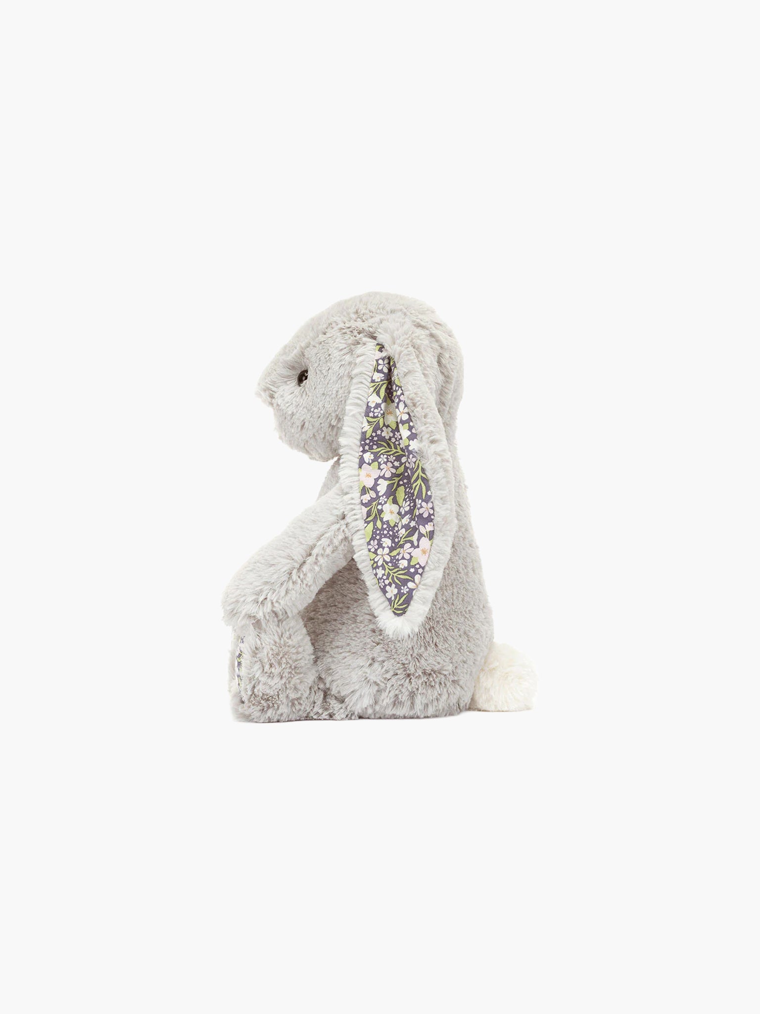Blossom Silver Bunny loves to go for a midnight stroll among the flowerbeds. In iconic silver-grey Bashful fur with a cream bobtail, Blossom Silver Bunny has soft cotton floral ears and feet, printed with an original Jellycat design of pink and white flowers scattered among a midnight blue backdrop. The perfect nighttime companion for all ages.