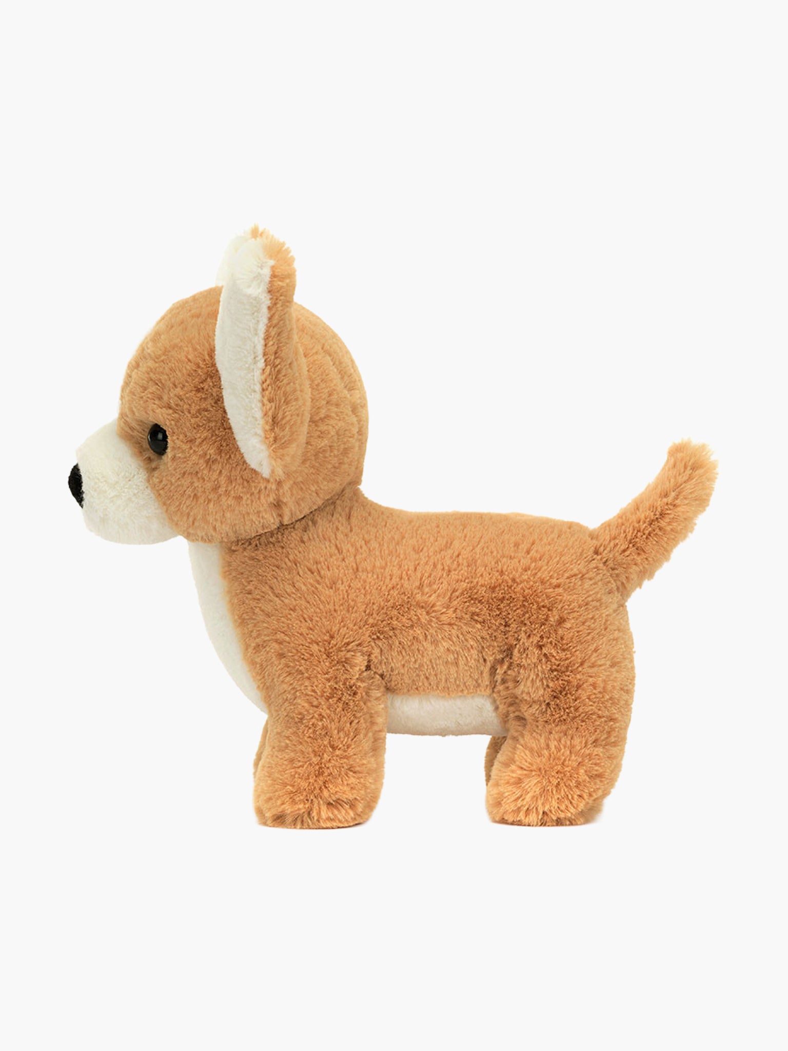 Isobel Chihuahua may have tiny legs, but this feisty pup can always keep up! Dreamily soft in honey fur, with bold vanilla patches, flared two-tone ears and a suedette nose, bright-eyed Isobel is ready to roam! A snuggly pal for long car journeys.