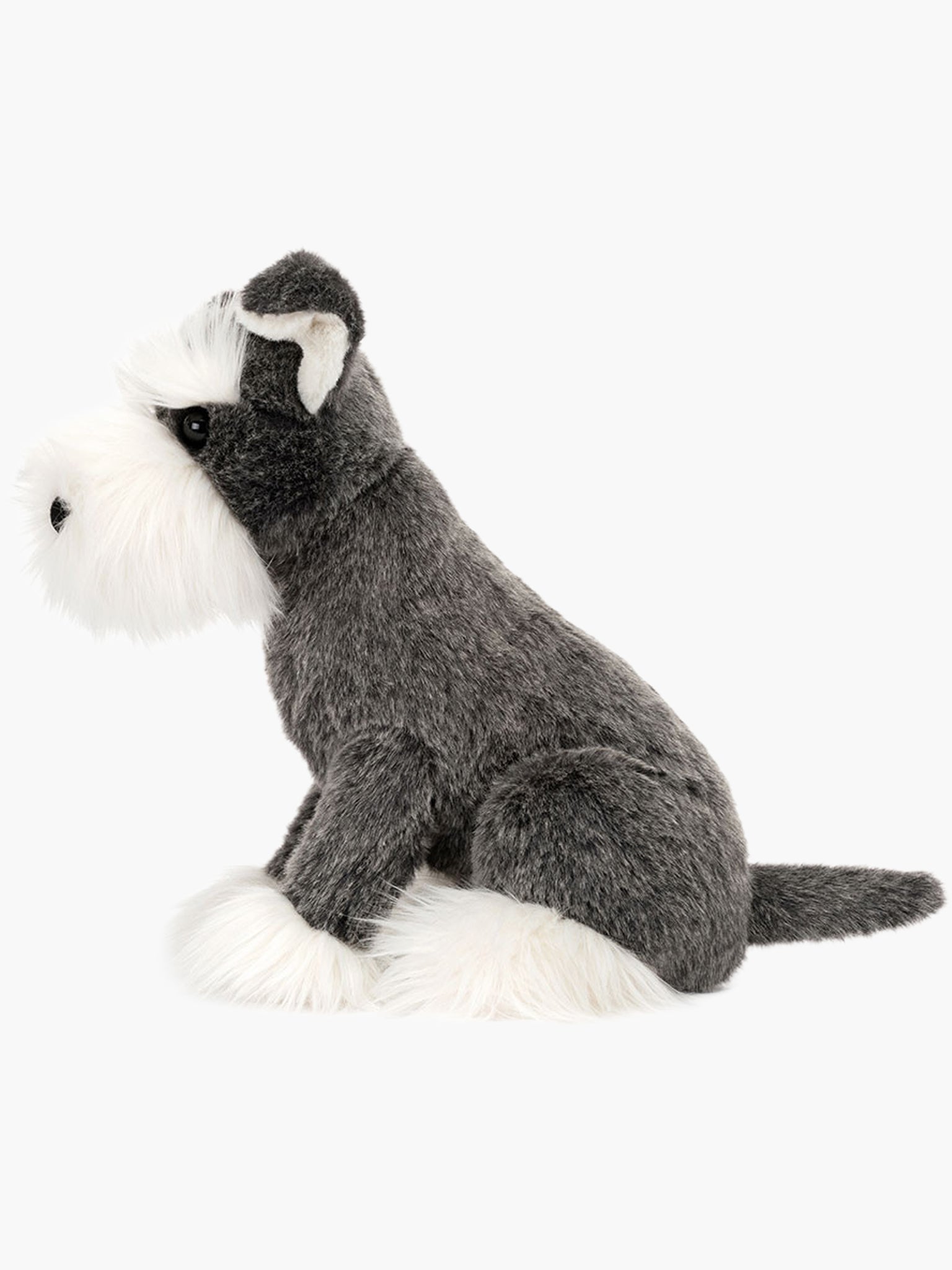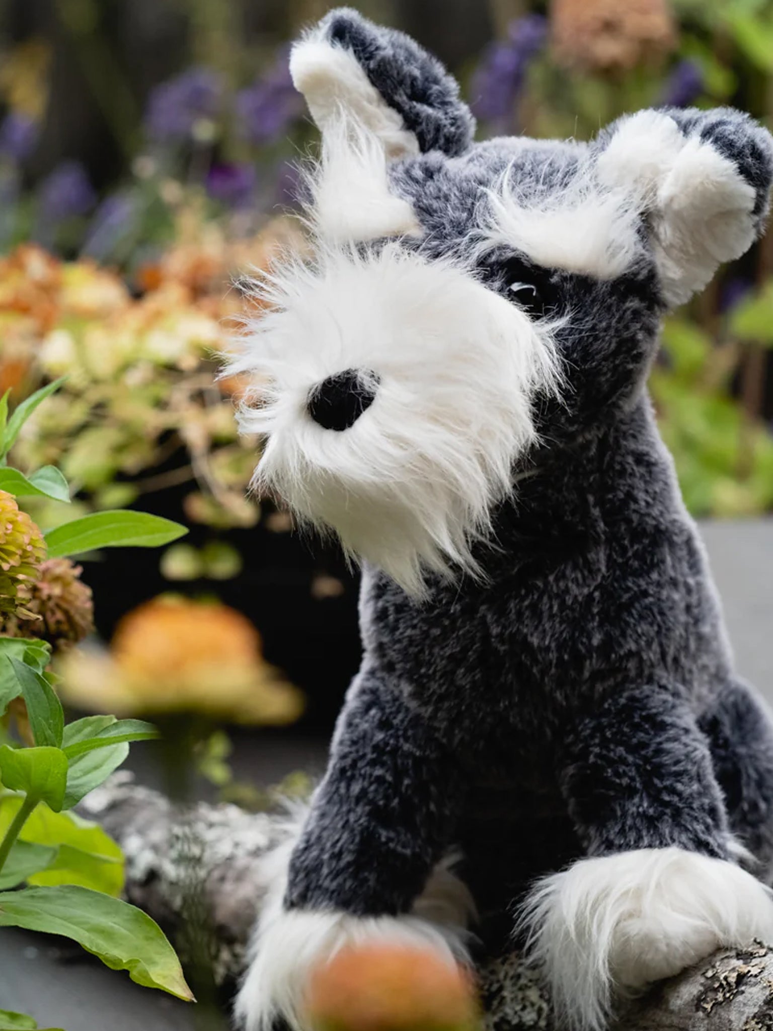 A feisty pup with foldy ears, Lawrence Schnauzer is certainly not shy! With big tufty eyebrows, a soft fuzzy muzzle, silky cream paws and gorgeous grey fur, this elegant, expressive gent is fierce friends with everyone he meets! Full of wags and woofs, this schnauzer's a star.