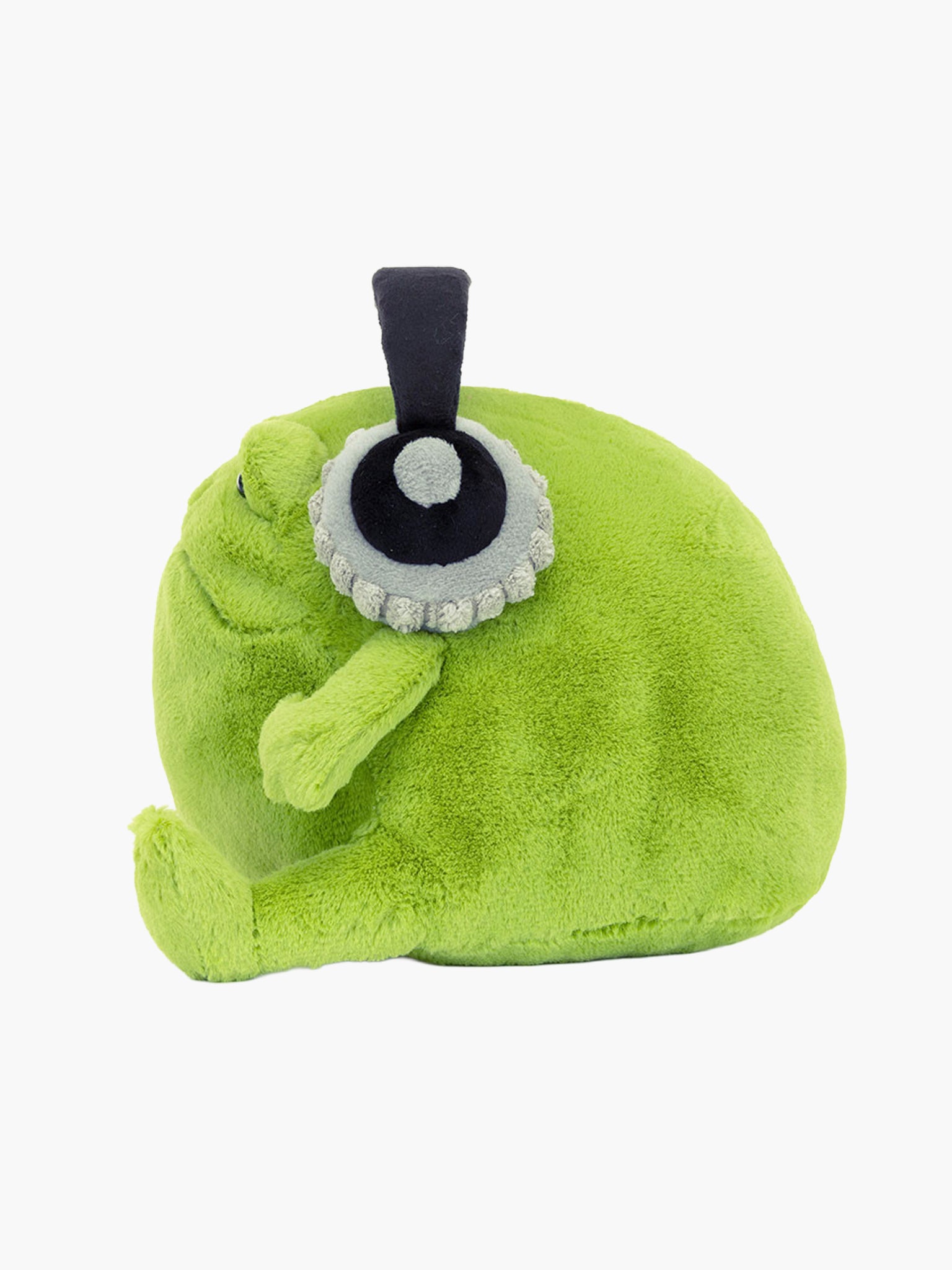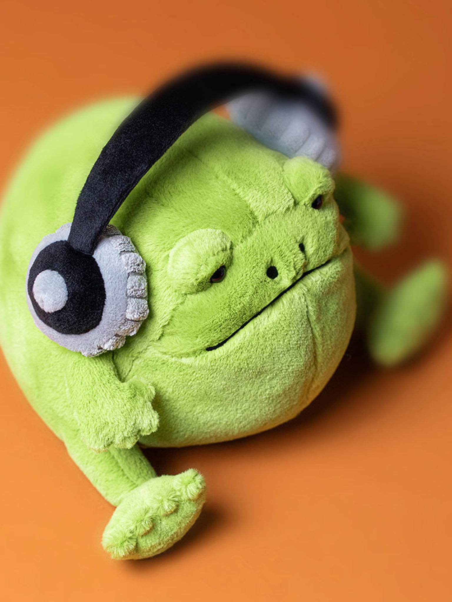 Sometimes life can be a lot to deal with. Ricky Rain Frog Headphones gets it. Our iconic green frog is chilling out, wearing his chunky black-and-grey headphones. With a flexible stiffened band, black disc details and chunky cord pads, these phones help Ricky focus. A relatable pal for chaotic days.