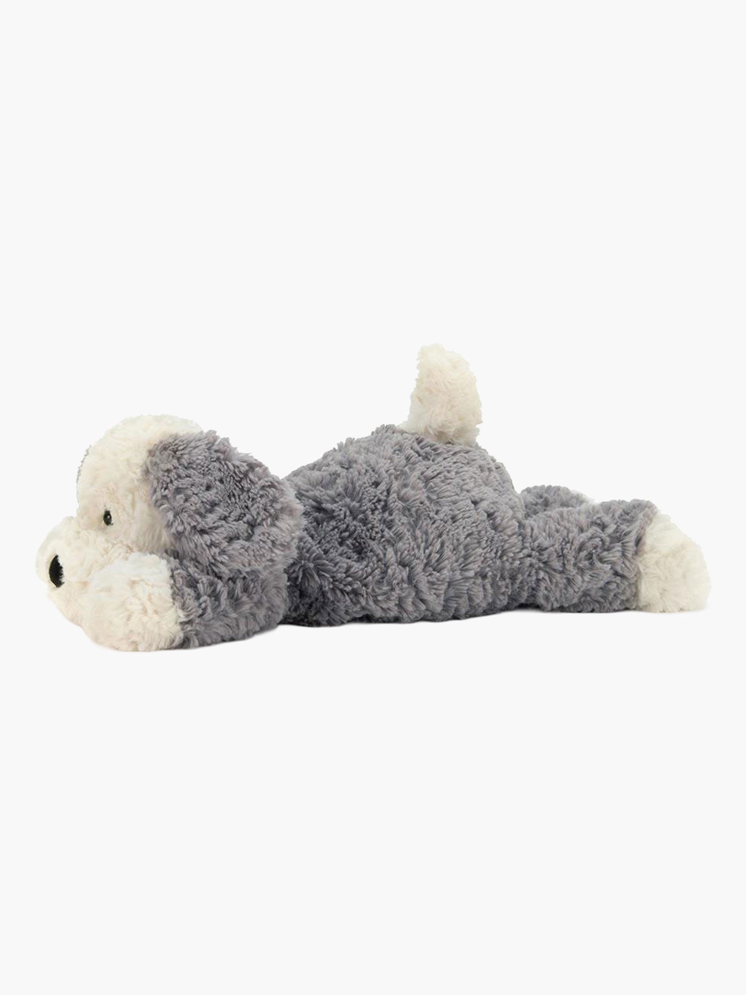 His sheep are so smart they’ve penned themselves in, so Tumblie Sheep Dog has nothing to do! Can you think up some funny games to play? This flopsy pup loves to roll on the grass, kicking up his snuggly grey and cream paws. He also likes to bark, but is very well behaved and will sit and stay beautifully!