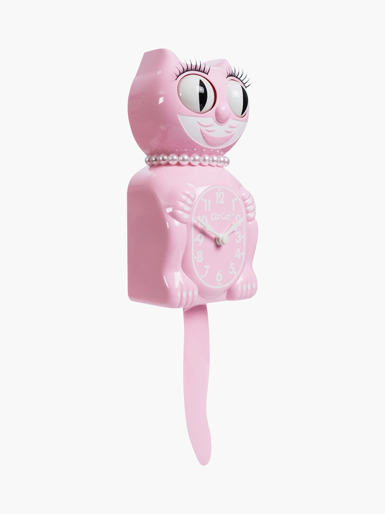 With his signature wagging tail, rolling eyes, and irresistible smile, the Kit Cat Clock has been an indelible part of American history and popular culture for more than 80 years. The clock was created by a designer from a small town in Oregon during the height of the Great Depression. Through the 1950s, Kit-Cat's popularity skyrocketed, and the dapper feline became a fixture in the American kitchen and synonymous with the era. This now timeless piece of Americana continues to spread cheer with his wily expression and contagious grin.