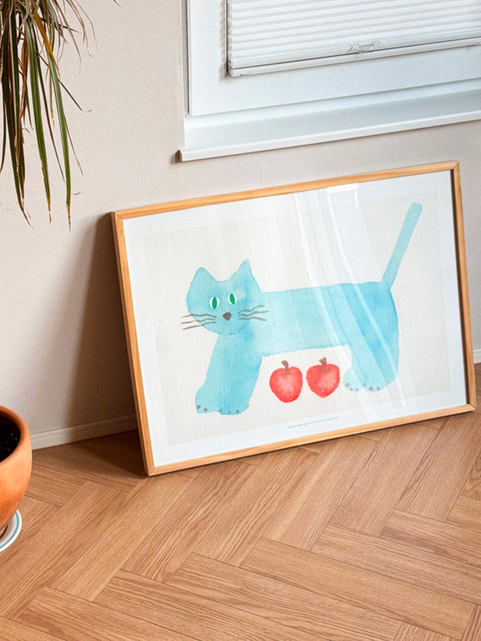'Blue Cat and Apples' Poster by Eunji Ryu.