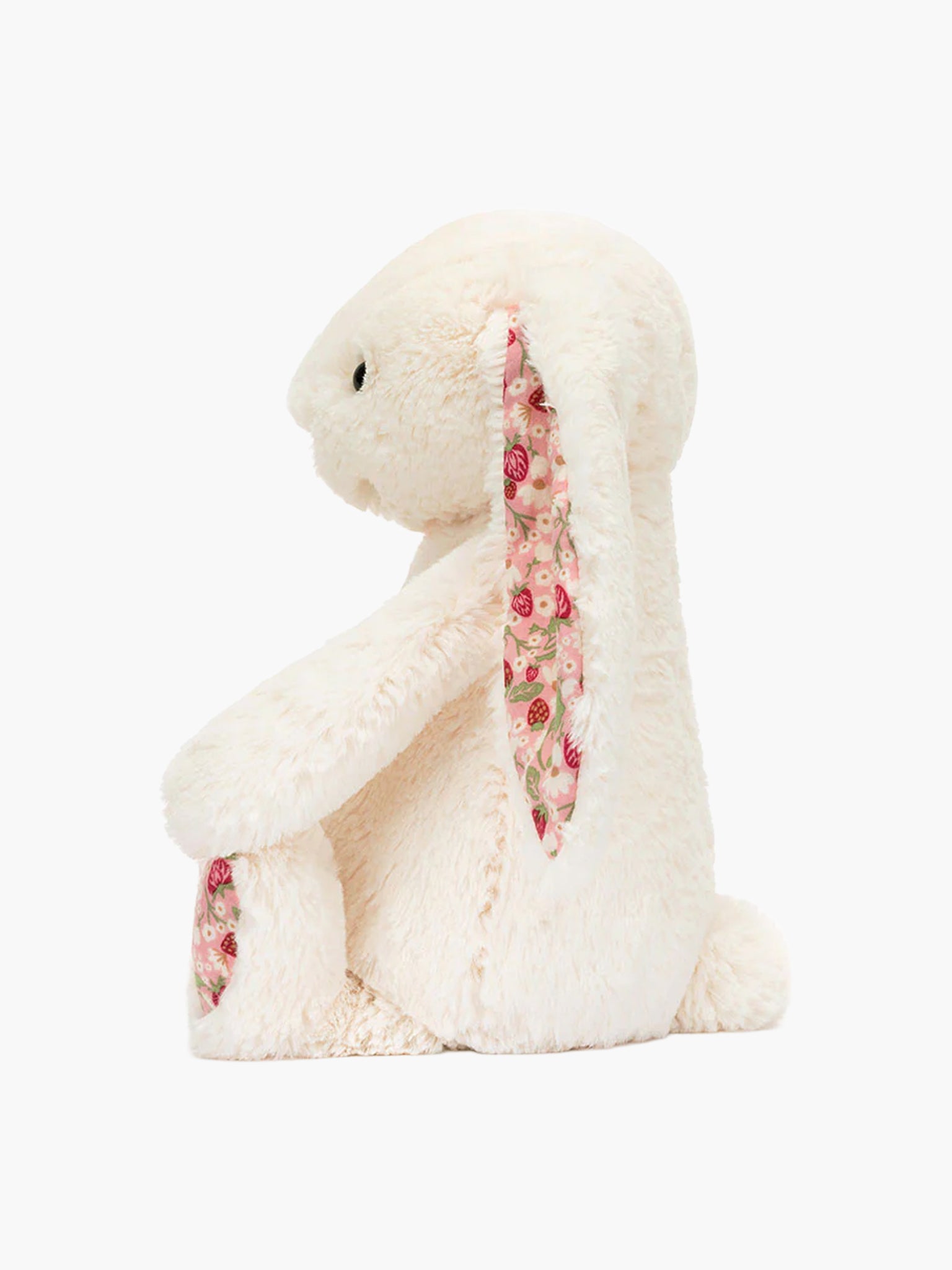 Blossom Cream Bunny has been berry picking in the fields. In iconic cream Bashful fur, Blossom Cream Bunny has soft cotton ears and feet, printed with an original Jellycat design of juicy strawberries and cream flowers on a pink backdrop. Bringing the joy of summertime to you all year long!