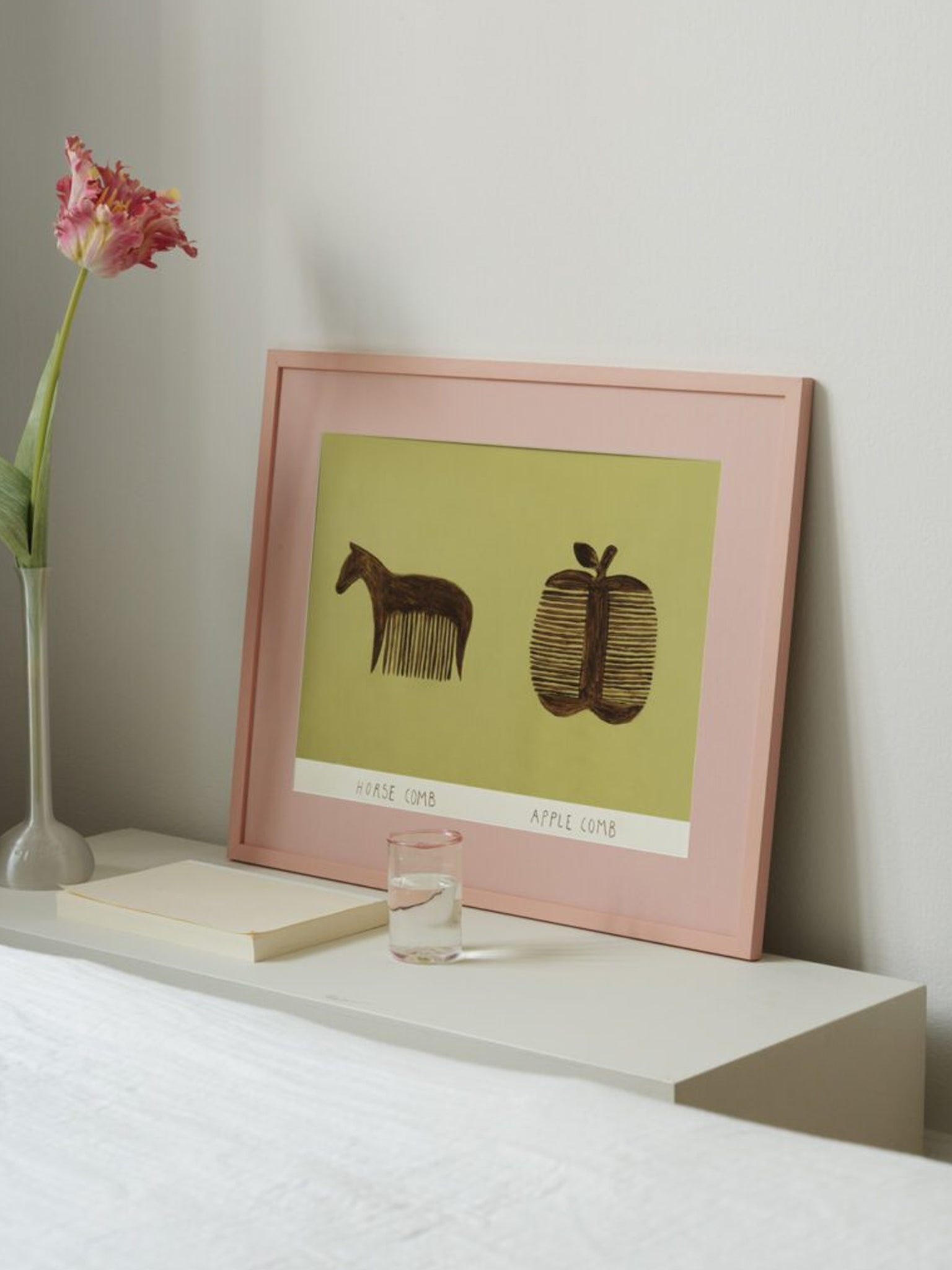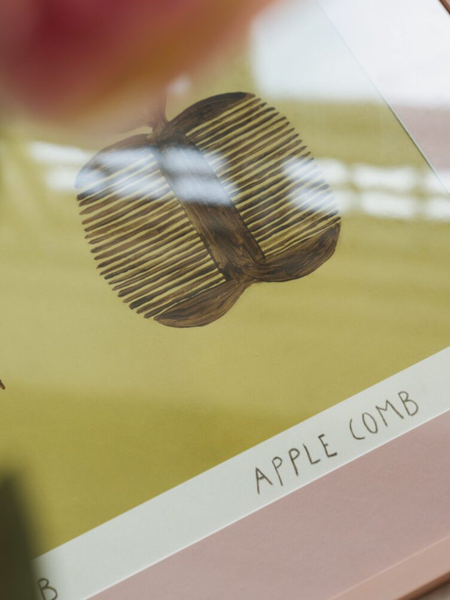 Horse & Apple Comb by Isabelle Vanderplassche. The Poster Club from Copenhagen, Denmark brings an assortment of works from selected artists made into a collection of playful and contemporary art prints that bring together elements of archival presentation and modern typography.