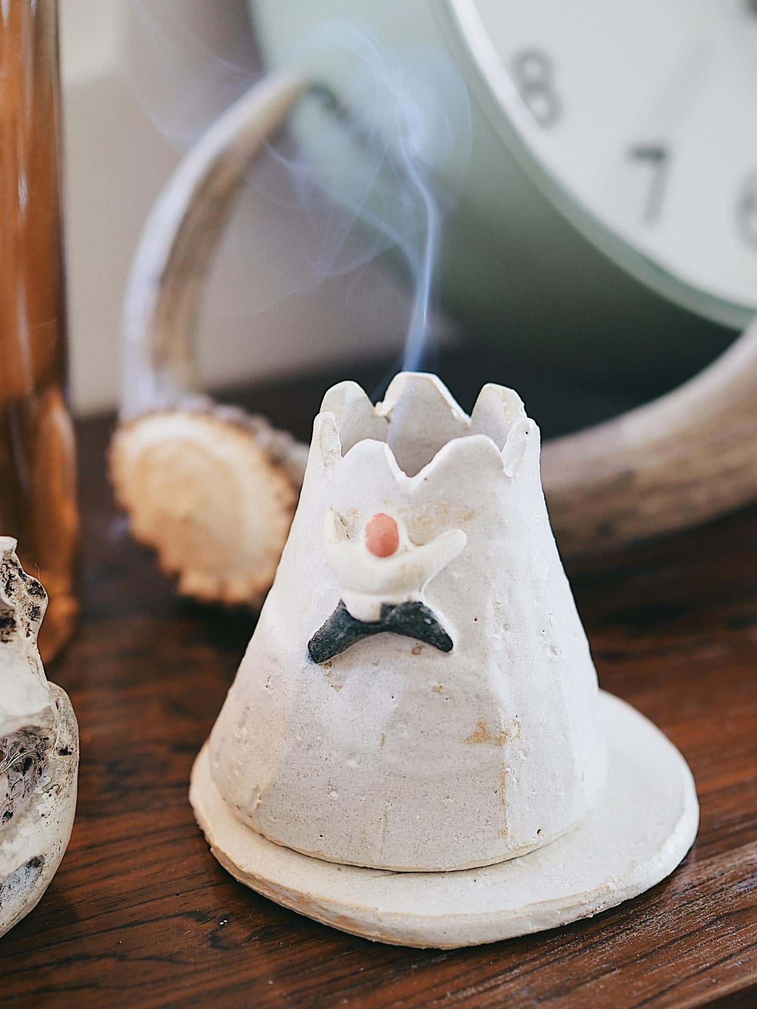 When incense is burned, smoke comes out from the top of the mountain, creating a healing space.