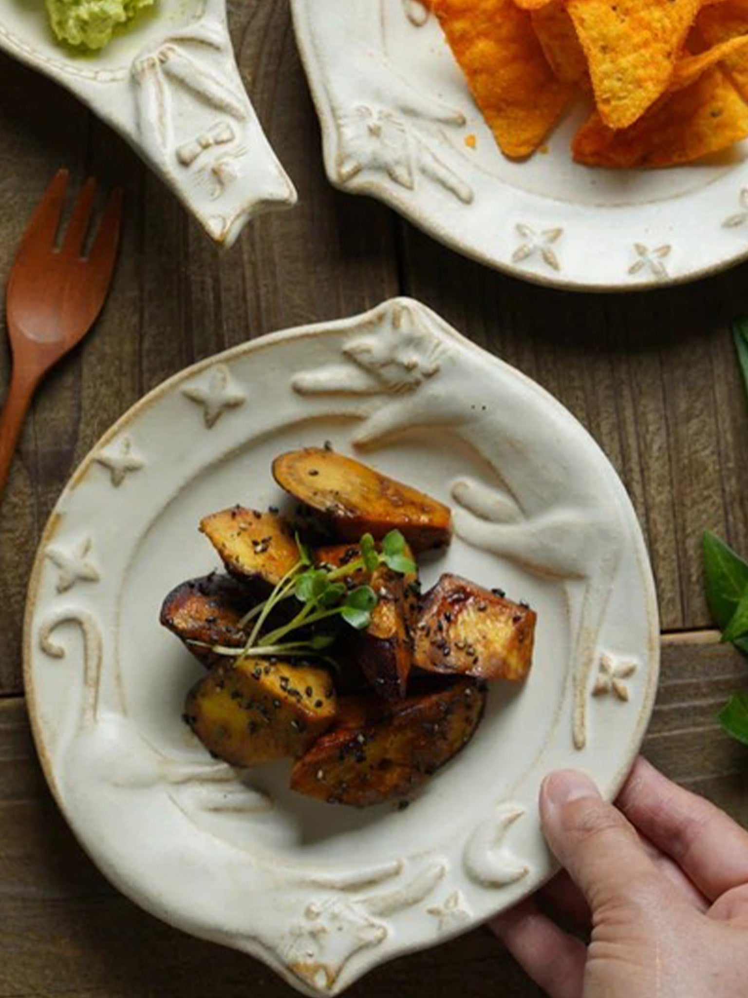These beautiful Starry Cat Plates are perfect for large meals or as a spread to snacks. Each item is made in Japan, meaning there will be slight variations in colour and texture between the individual products, so each one is unique!