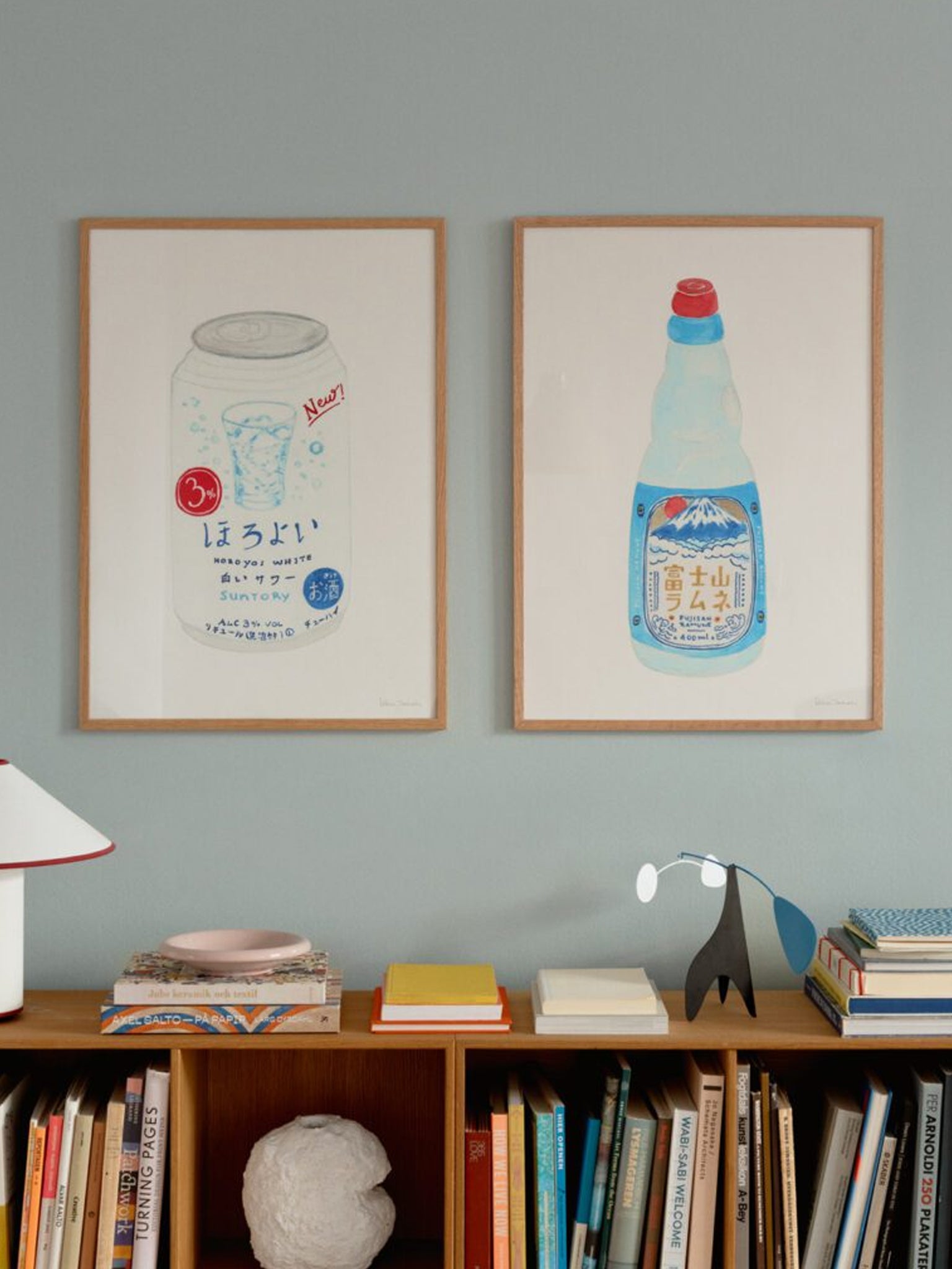 Her works are created by hand in her Berlin home studio, using primarily watercolour, gel pens and coloured pencils. A love for Japan and its design language runs throughout her illustrations – especially the bold palettes, charming forms and tightly composed layouts found in packaging and folk toys.