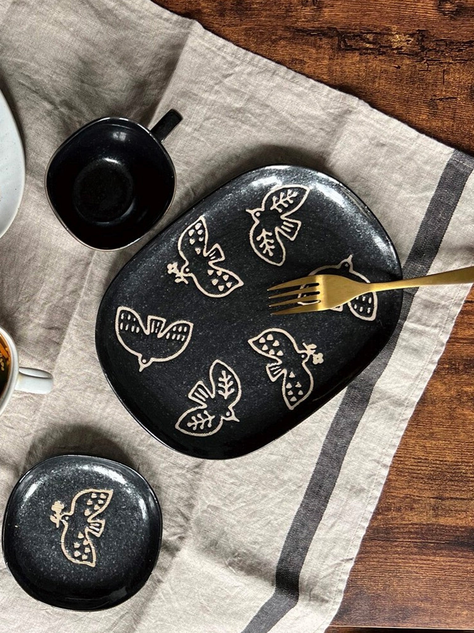 With a glossy sheen and hand-painted bird design, these Toritoha dishes are beautiful either alone or as a set.