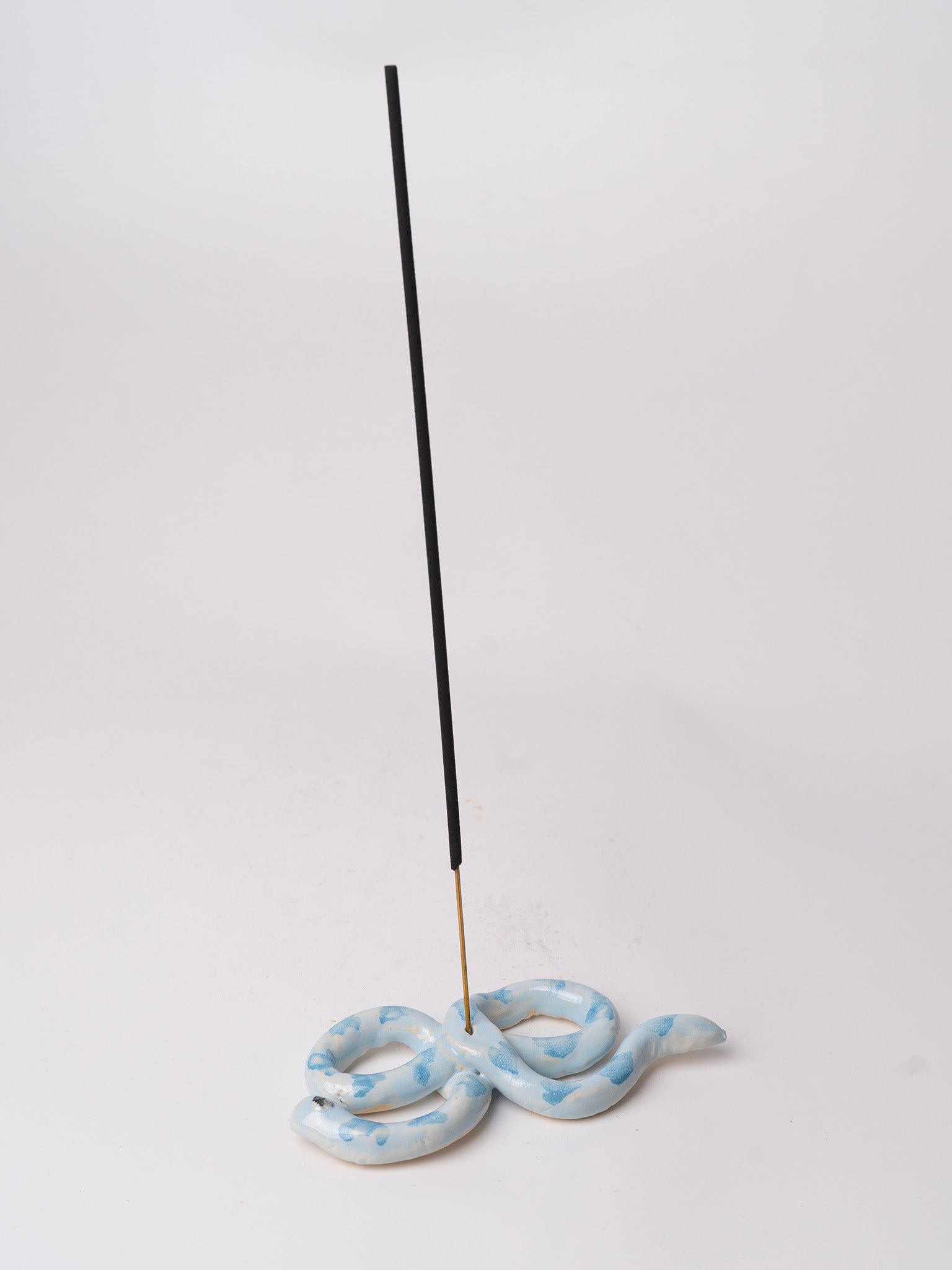 This is a ribbon-shaped blue snake incense holder made to celebrate the Year of the Blue Snake in 2025.