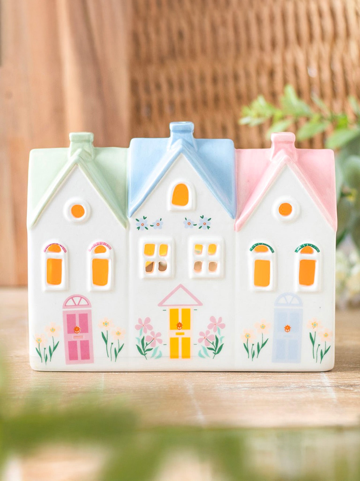 Fill the home with warmth and charm with this pretty house-shaped tealight holder which also doubles as an incense cone burner. Pretty and practical, it's a decorative detail with subtle pastel hues to compliment any space. Designed by Something Different and part of the 'Home Sweet Home' collection of spring home decor accessories.