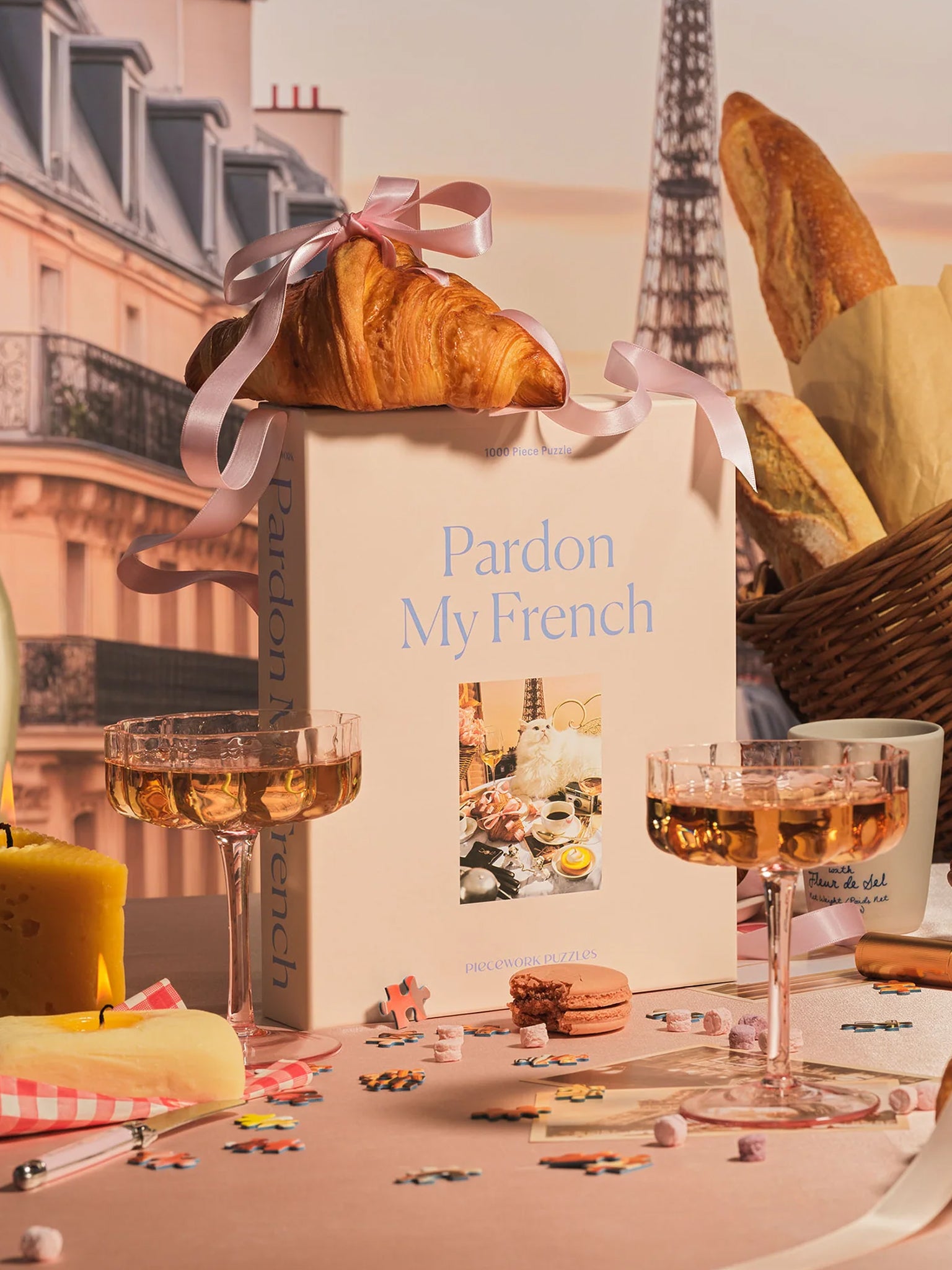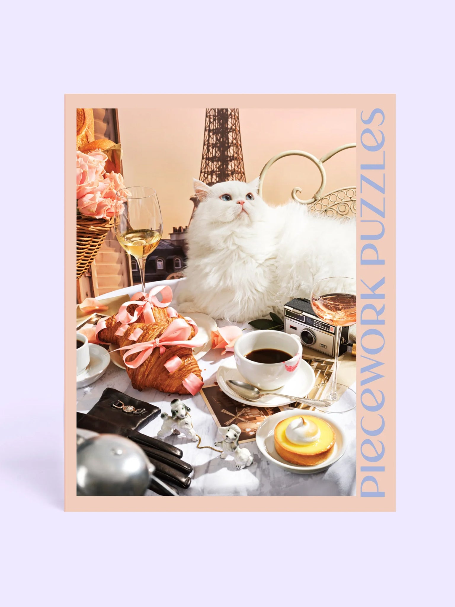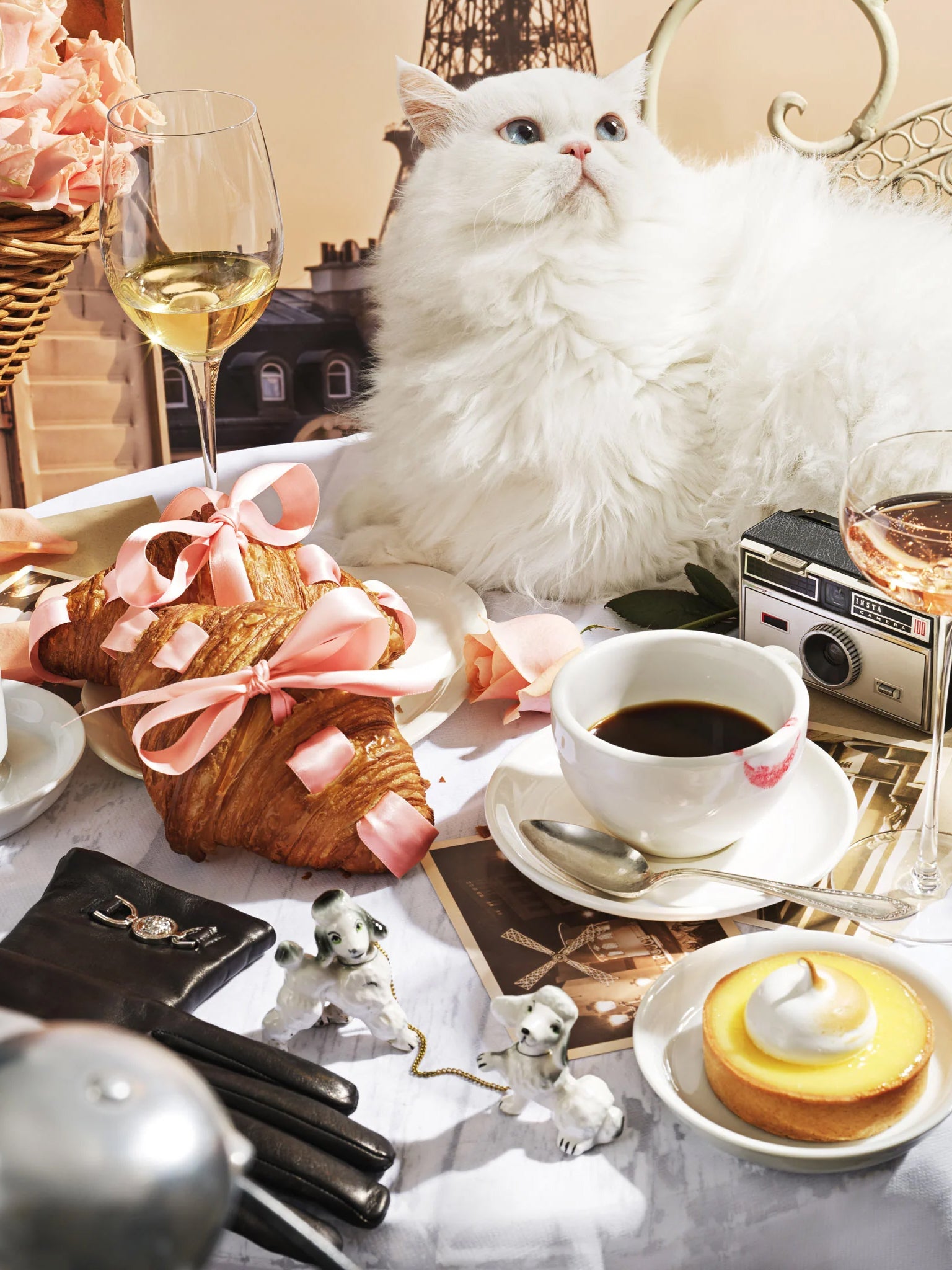 We're taking a field trip to Paris! This petite masterpiece — and playful ode to the city of lights — makes the most of French flair with a quirky collage of baguettes, bubbles, and baked goods. And one very adorable, grumpy cat.