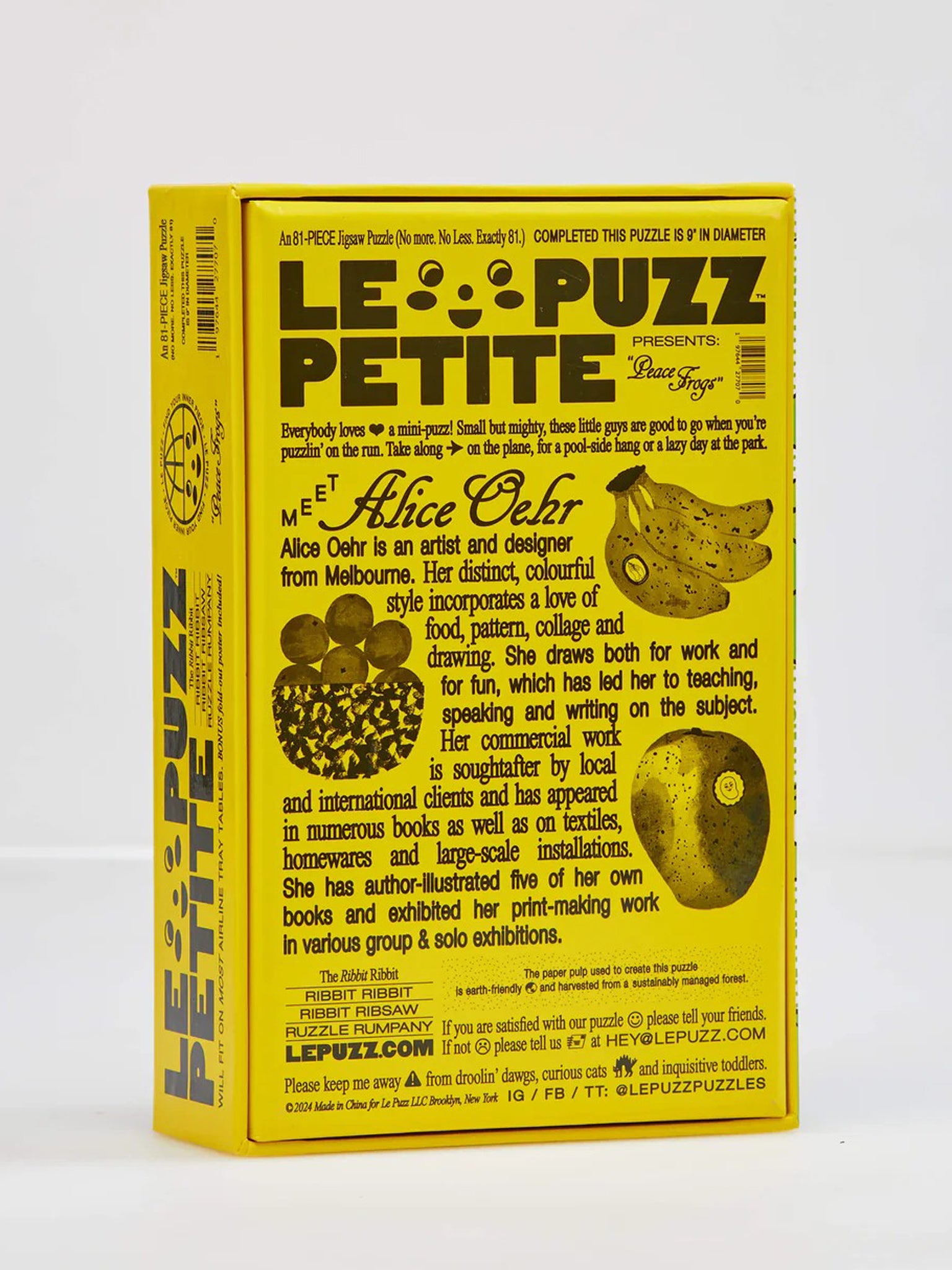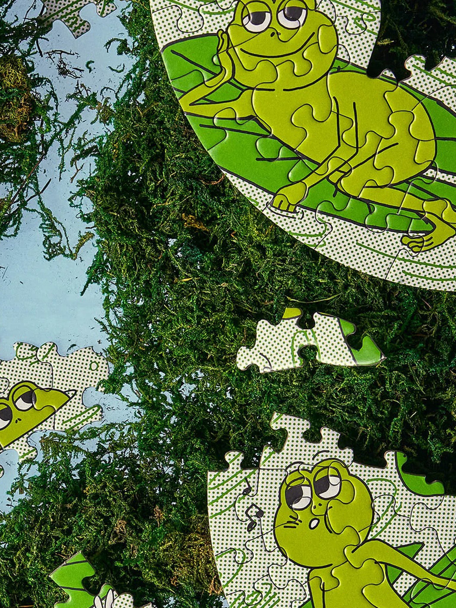 A mini-puzzle collaboration with illustrator artist Alice Oher! The perfect little puzzle for small spaces, bogs, lily pads and swamps. Ribbit Ribbit!