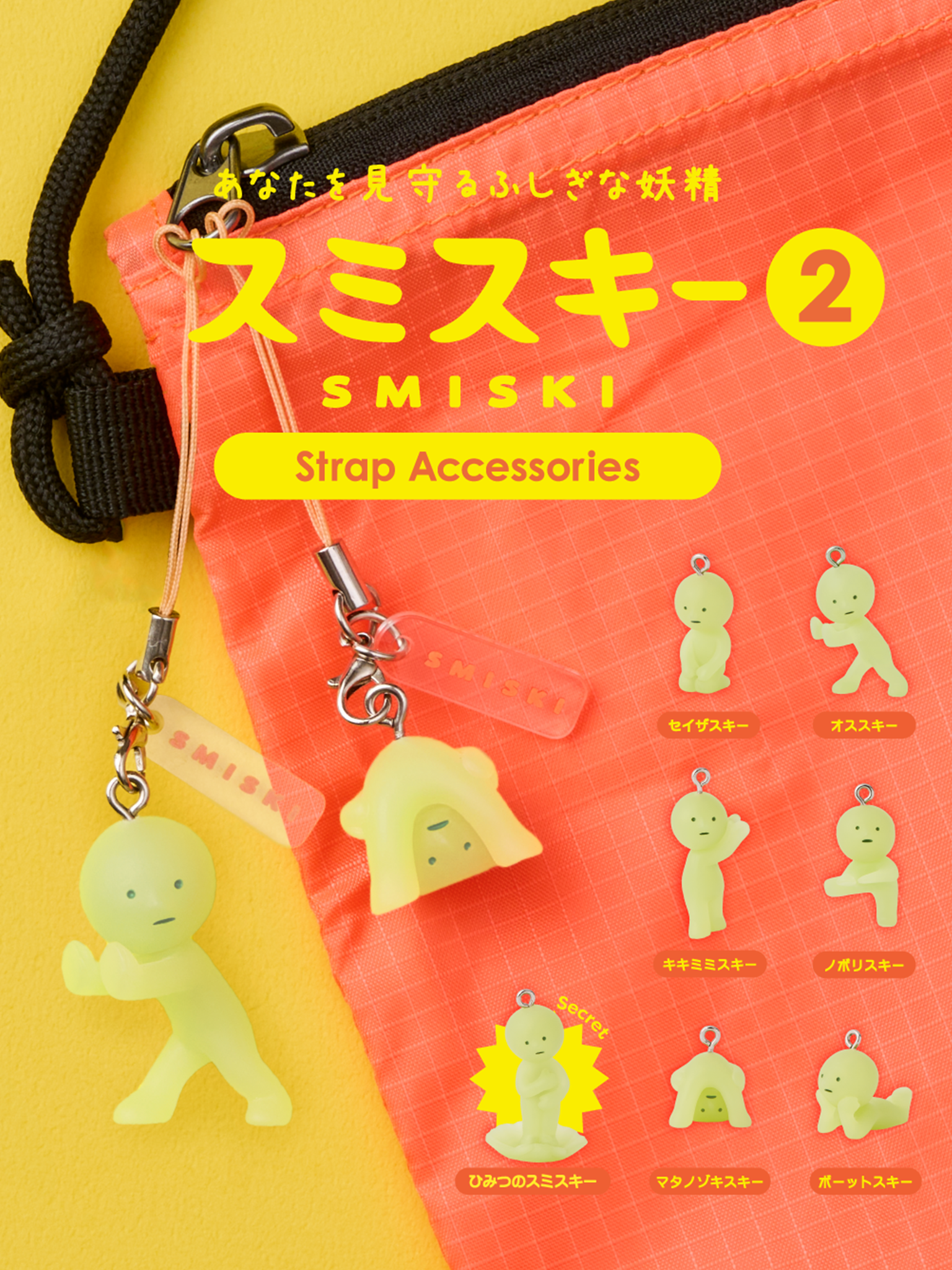 Smiski Strap Series 2 features 6 Smiski styles, plus a secret rare style. Smiski come packaged randomly in blind boxes so you won’t know which one you’ll get until you open the box. Smiski are glow in the dark and are the perfect friend for your bag!