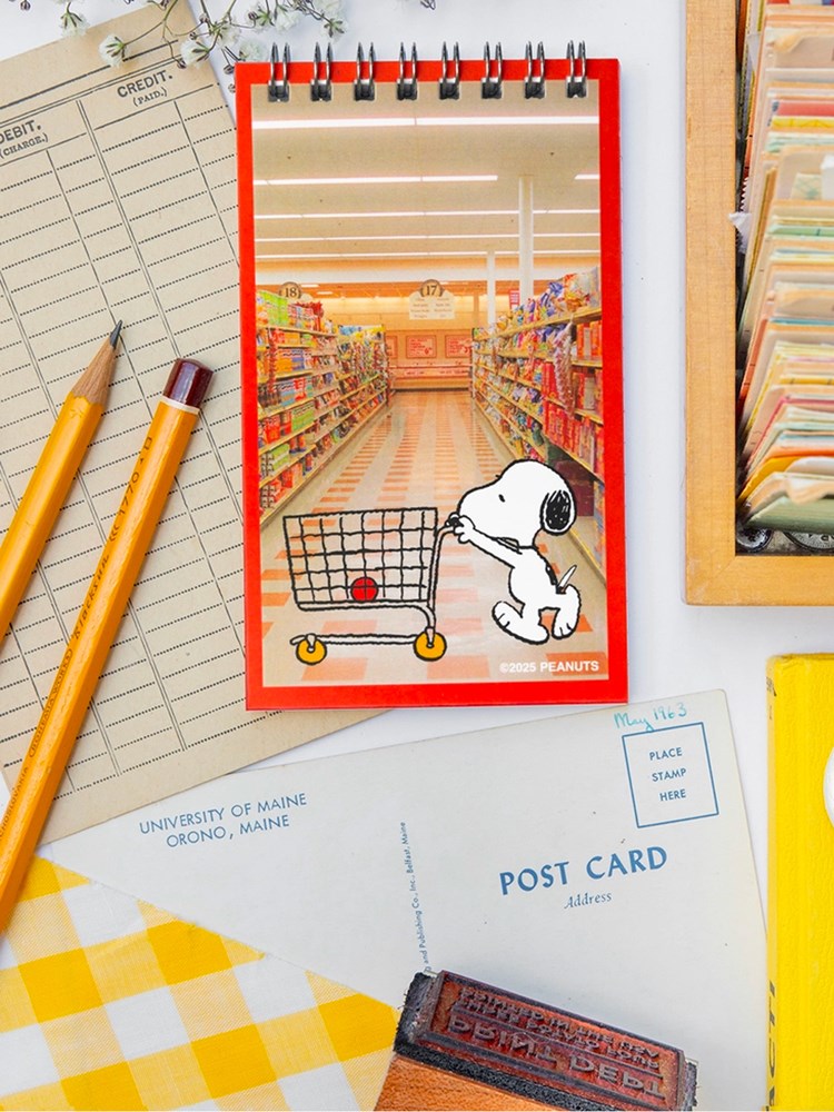 A nostalgic nod to the stationery aisle—those tiny spiral notebooks you’d flip through while your mom checked out at the local five-and-dime. These vintage-style memo pads are straight out of the 1980s, reimagined with photo-real backgrounds and everyone’s favorite beagle doing what he does best: being adorable.At 3" x 5", they’re the perfect pocket-sized companion for snack lists, scribbled thoughts, love notes, or whatever your brain blurts out when your phone’s dead and you need to write it down somewhere.Old school charm.