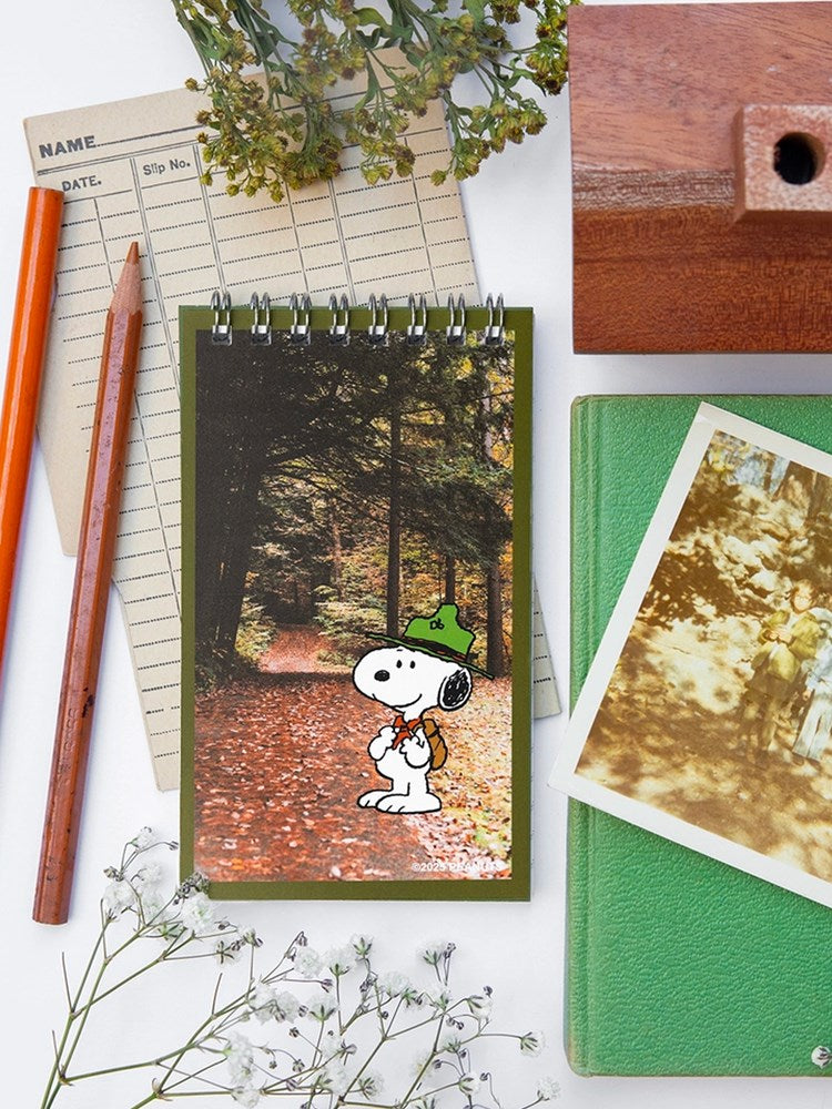A nostalgic nod to the stationery aisle—those tiny spiral notebooks you’d flip through while your mom checked out at the local five-and-dime. These vintage-style memo pads are straight out of the 1980s, reimagined with photo-real backgrounds and everyone’s favorite beagle doing what he does best: being adorable.At 3" x 5", they’re the perfect pocket-sized companion for snack lists, scribbled thoughts, love notes, or whatever your brain blurts out when your phone’s dead and you need to write it down somewhere.Old school charm.