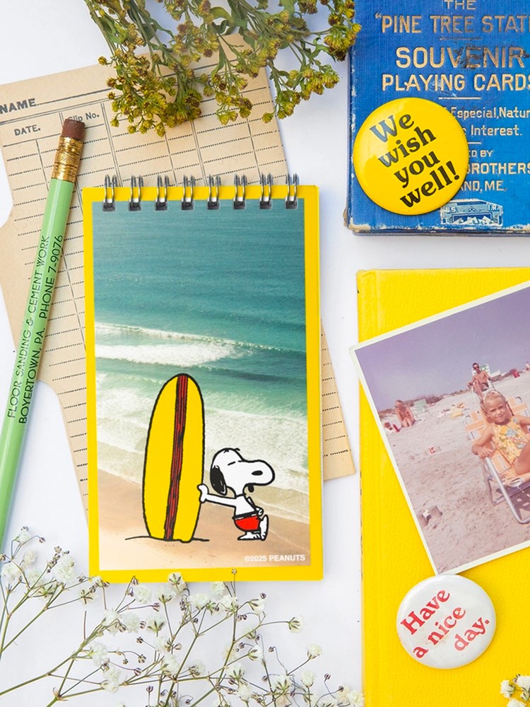 A nostalgic nod to the stationery aisle—those tiny spiral notebooks you’d flip through while your mom checked out at the local five-and-dime. These vintage-style memo pads are straight out of the 1980s, reimagined with photo-real backgrounds and everyone’s favorite beagle doing what he does best: being adorable.At 3" x 5", they’re the perfect pocket-sized companion for snack lists, scribbled thoughts, love notes, or whatever your brain blurts out when your phone’s dead and you need to write it down somewhere.Old school charm.