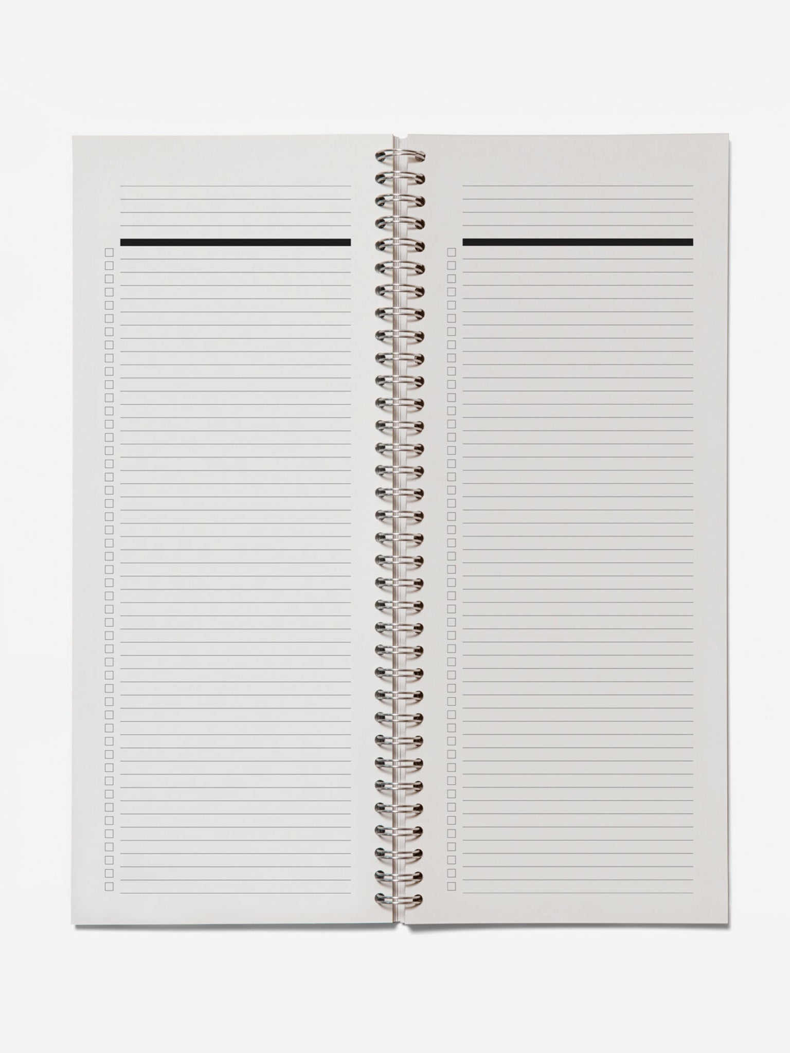 A List Of Things is a notebook dedicated to listmaking conceived by Marjolein Delhaas and Patter. Designed with consideration, A List of Things invites customisation on each page. Taking a pen and committing to paper is an important act with intention and using A List of Things celebrates that. The cover comes with a special postcard displaying an image from Pause, a new Patter film, and is bound along the spiral with an easy-to-tear perforated line.